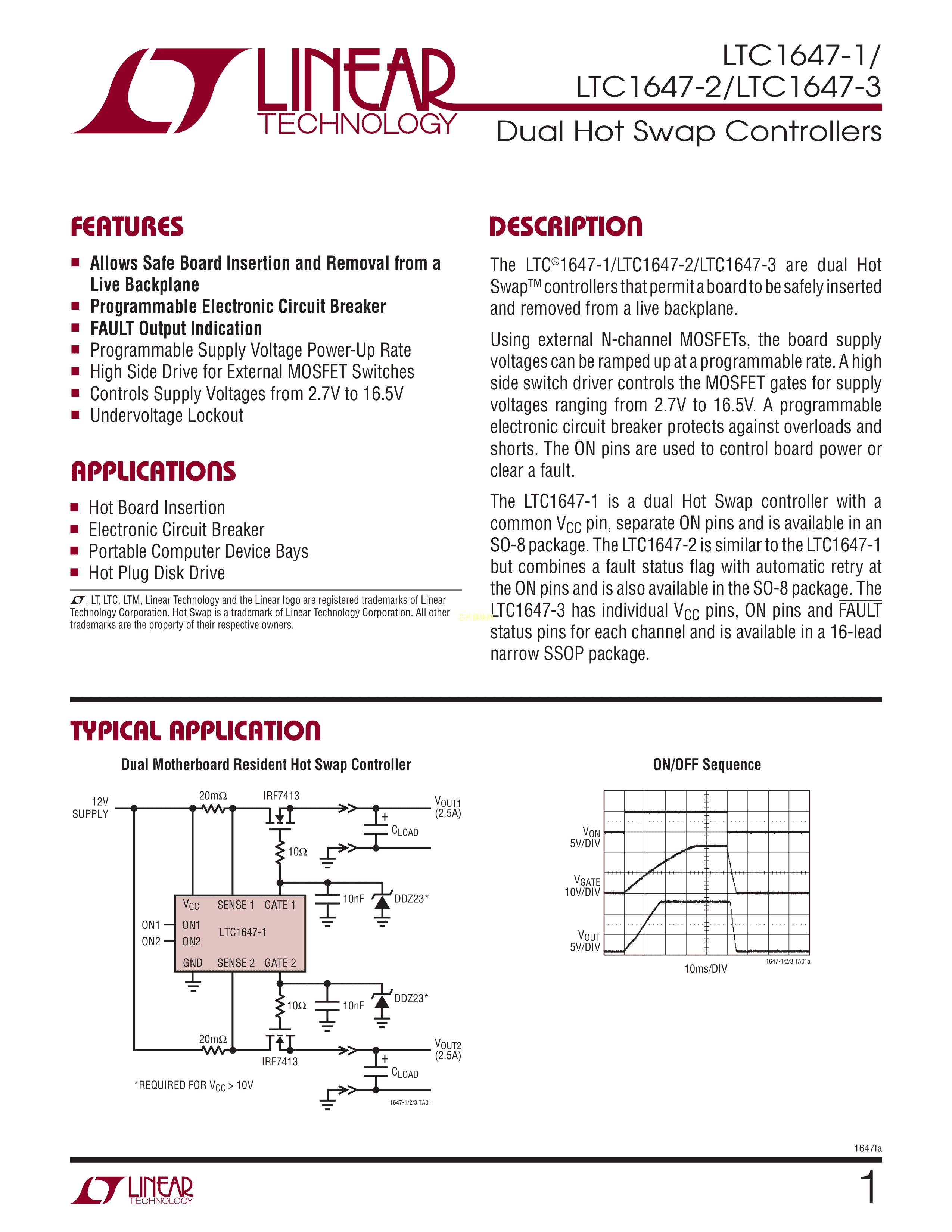 LTC1647-2IS8#TRPBF数据手册SO-8封装ADI(亚德诺)-LINEARPDF规格书,