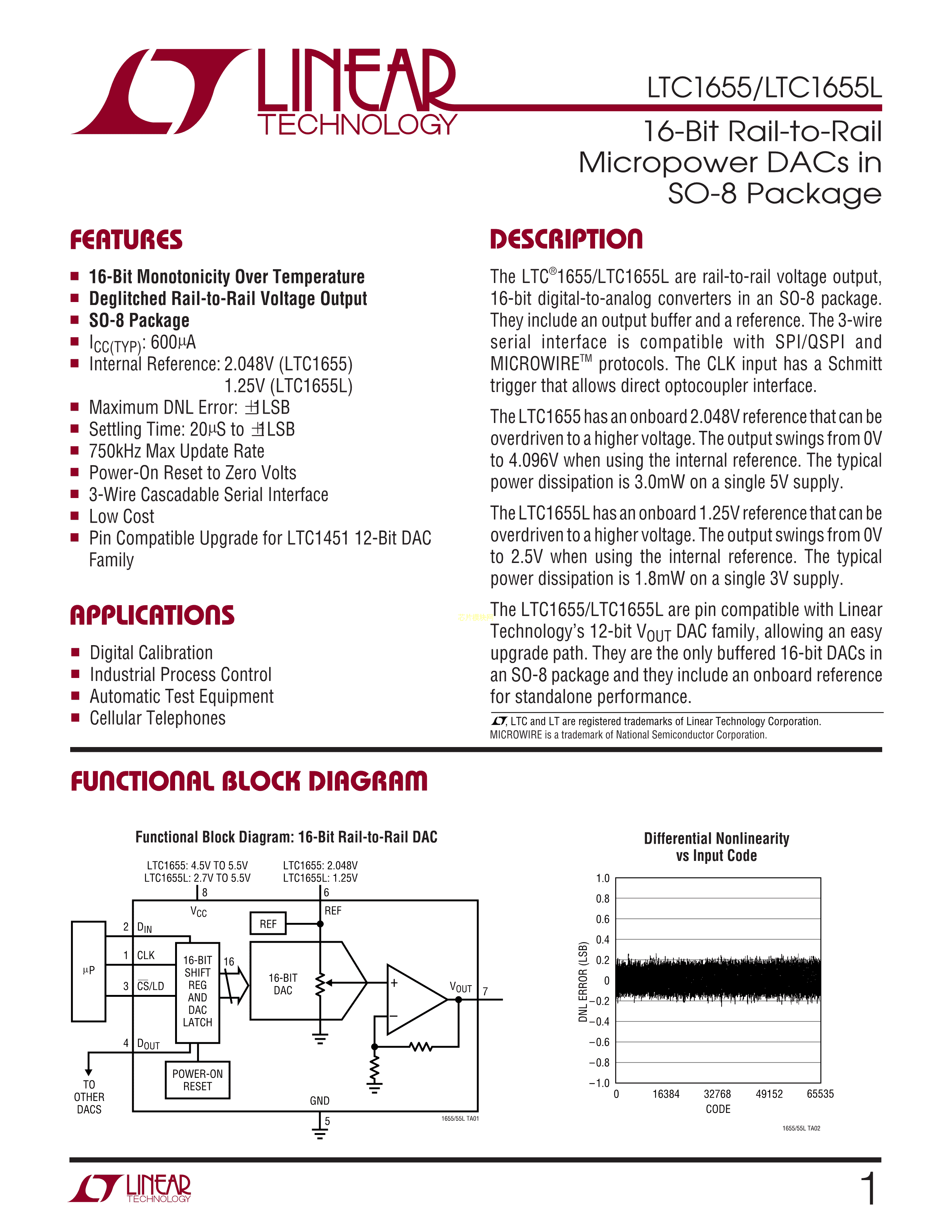 LTC1655IS8#TRPBF数据手册SO-8封装ADI(亚德诺)-LINEARPDF规格书,中英