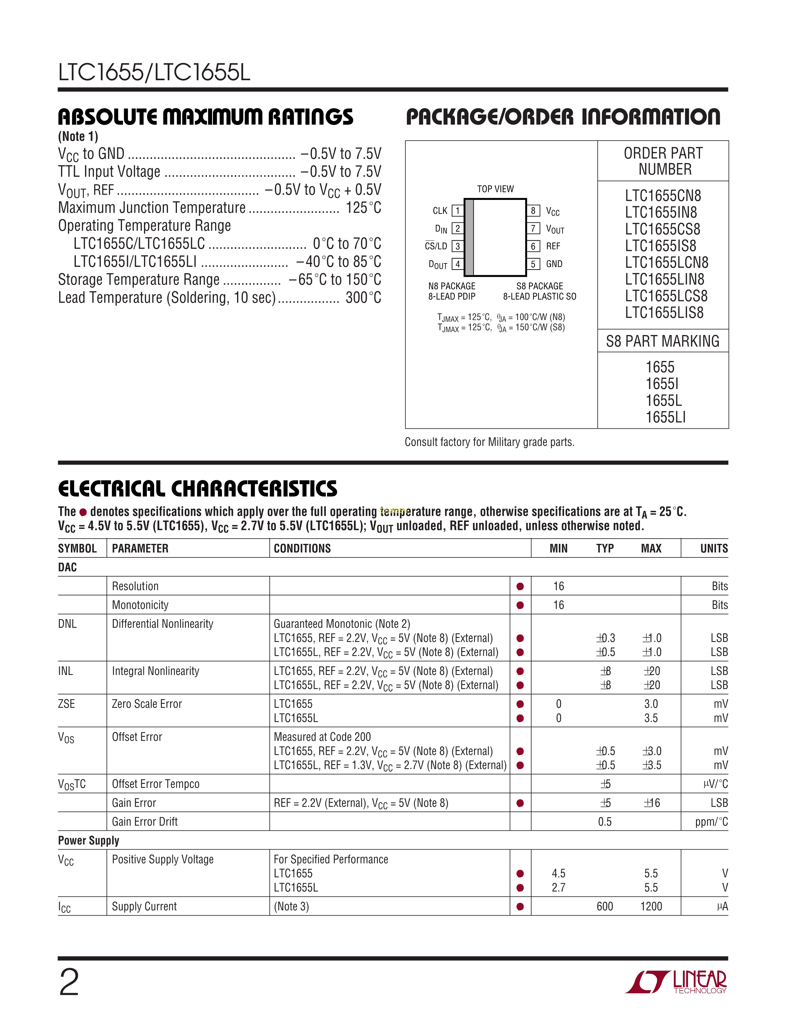 LTC1655LCS8#TRPBF数据手册SO-8封装ADI(亚德诺)-LINEARPDF规格书,中