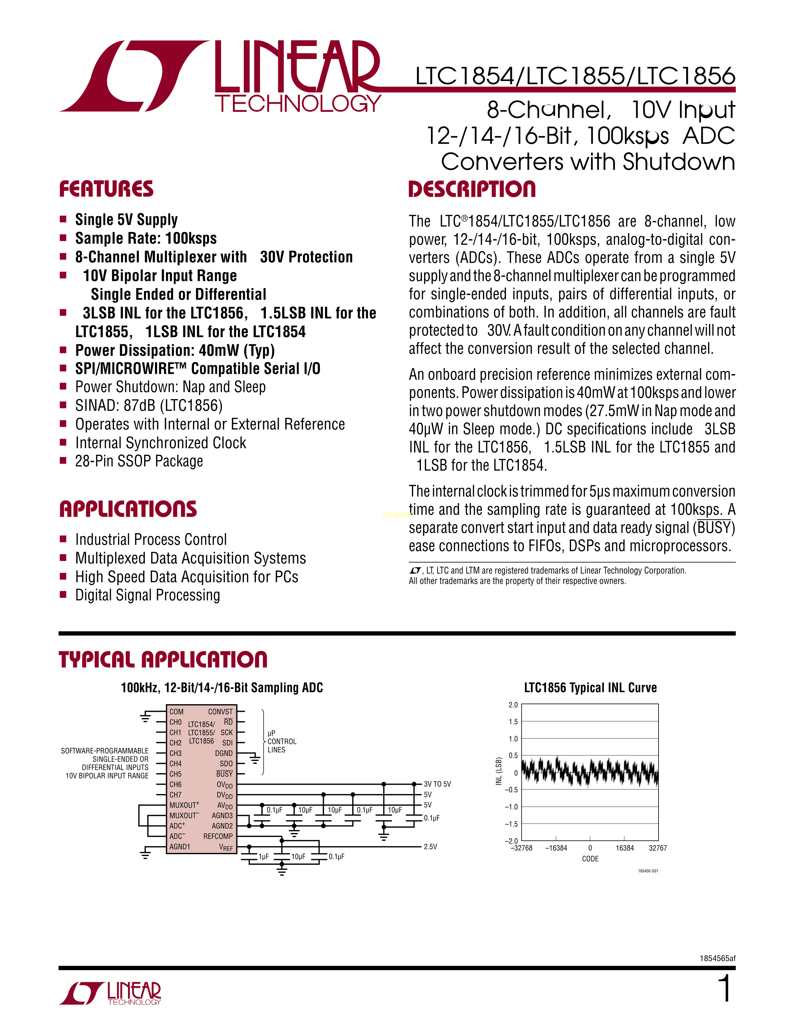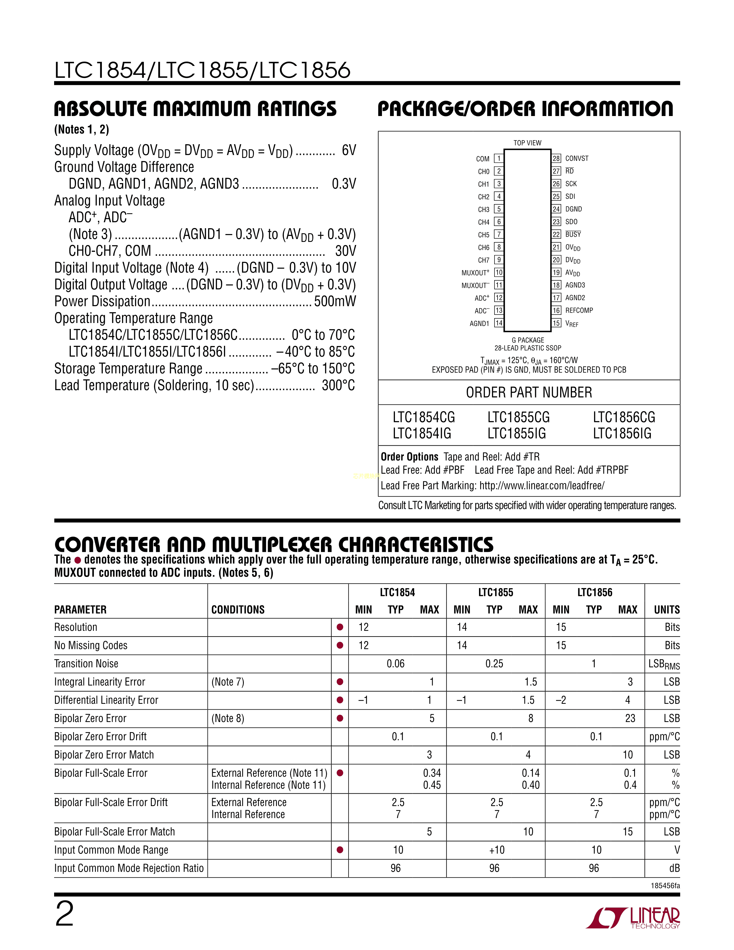 LTC1856CG#PBF数据手册SSOP-28封装ADI(亚德诺)-LINEARPDF规格书,中英