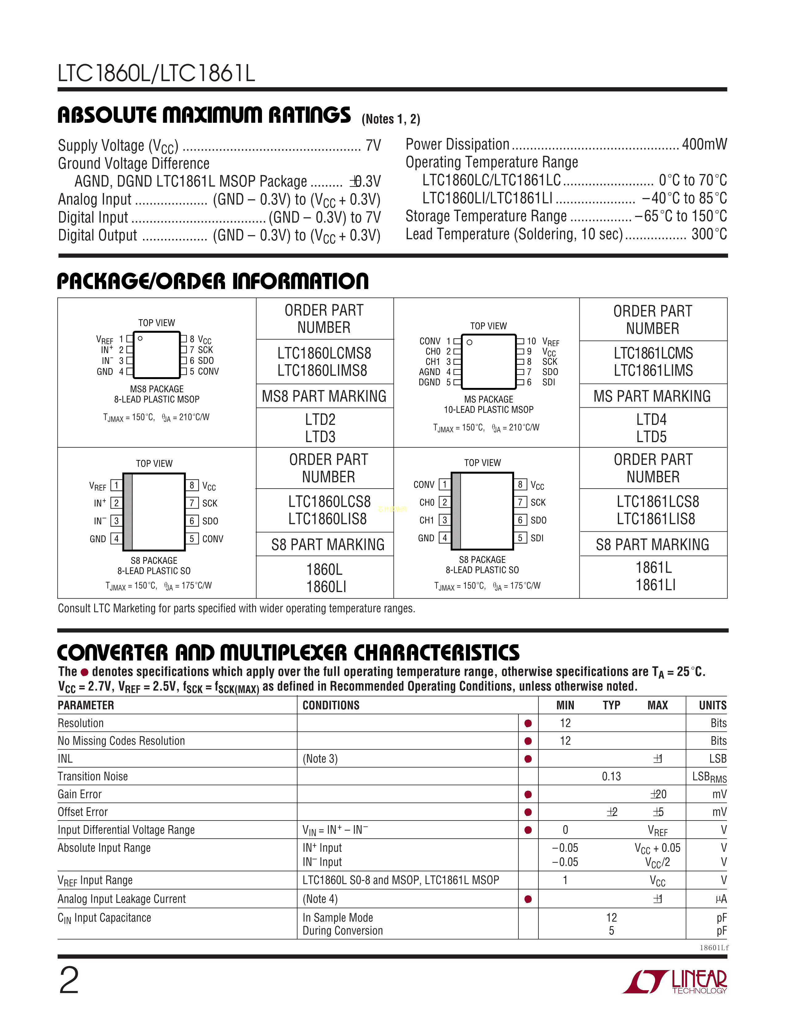 LTC1861LCMS#PBF数据手册MSOP-10封装ADI(亚德诺)-LINEARPDF规格书,