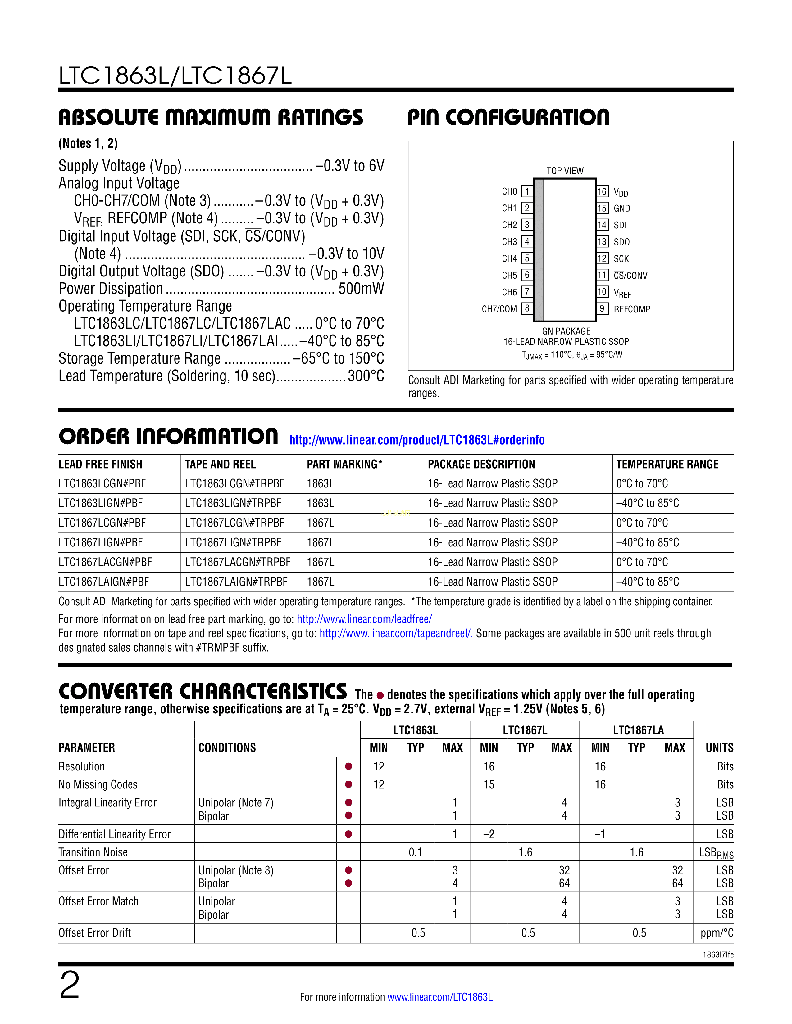 LTC1863LCGN#PBF数据手册SSOP-16封装ADI(亚德诺)-LINEARPDF规格书,