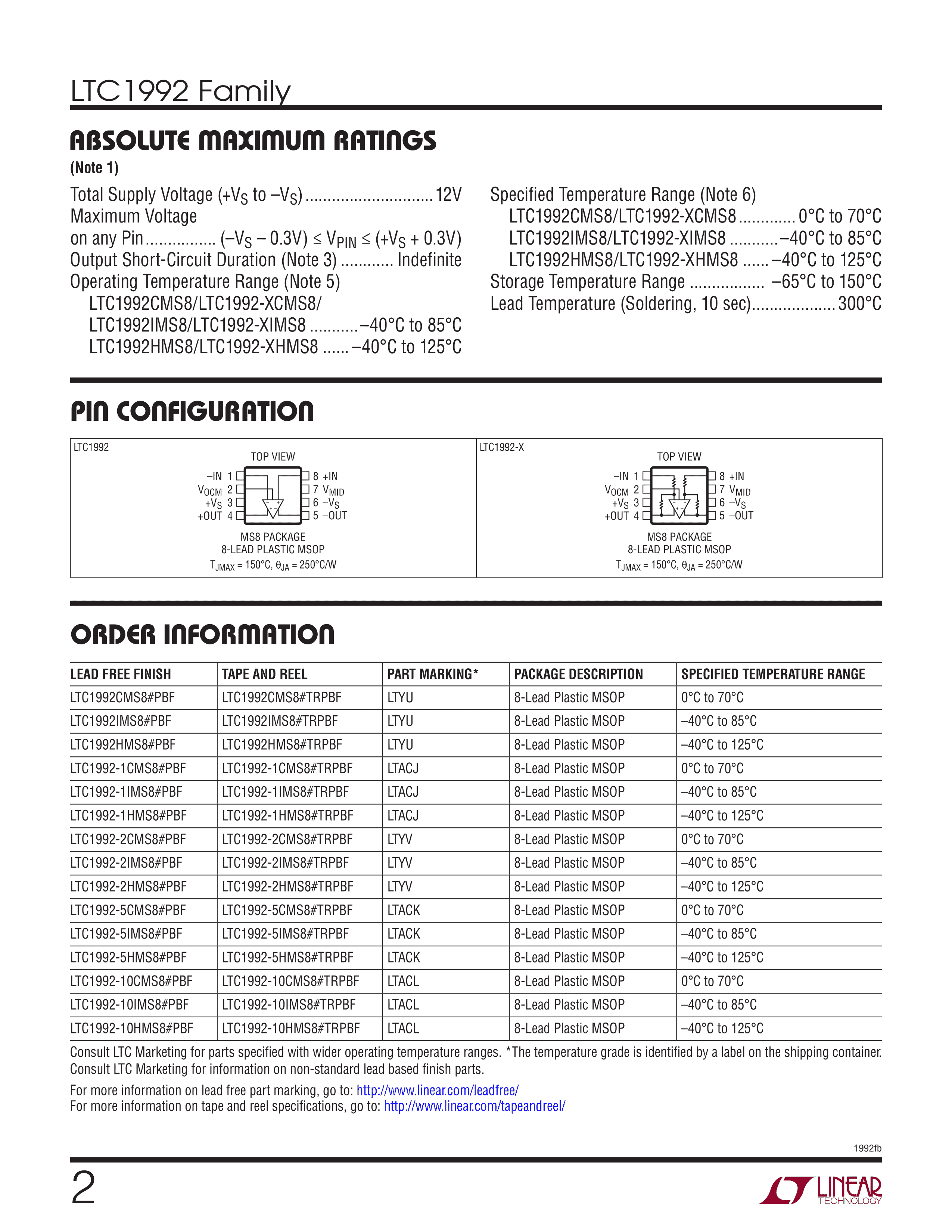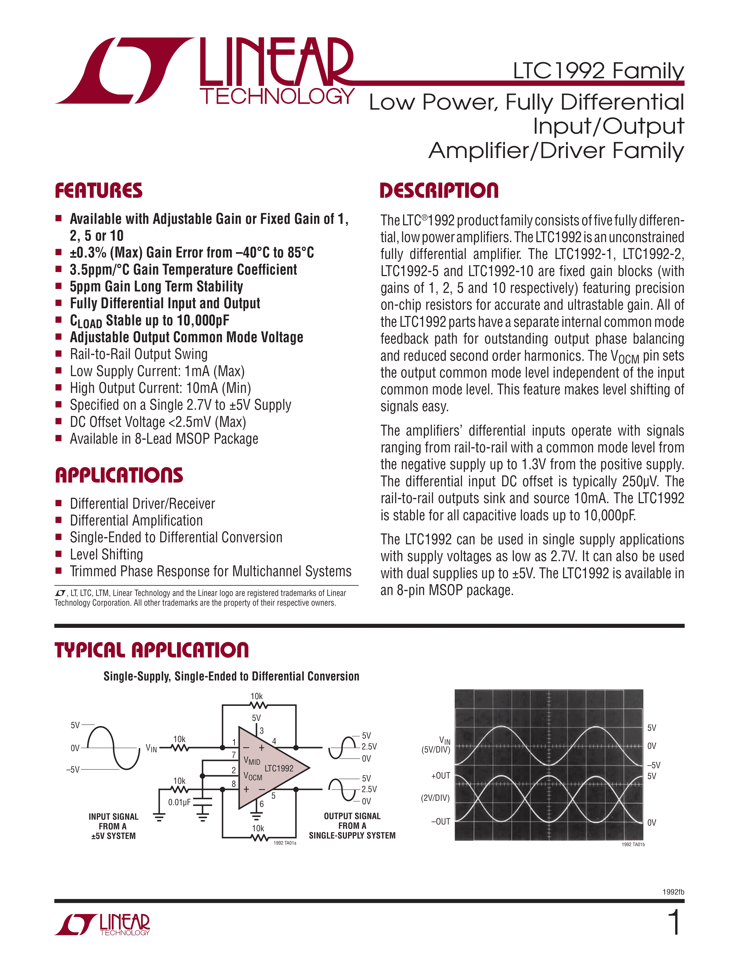 LTC1992-1HMS8#TRPBF数据手册MSOP-8封装ADI(亚德诺)-LINEARPDF规