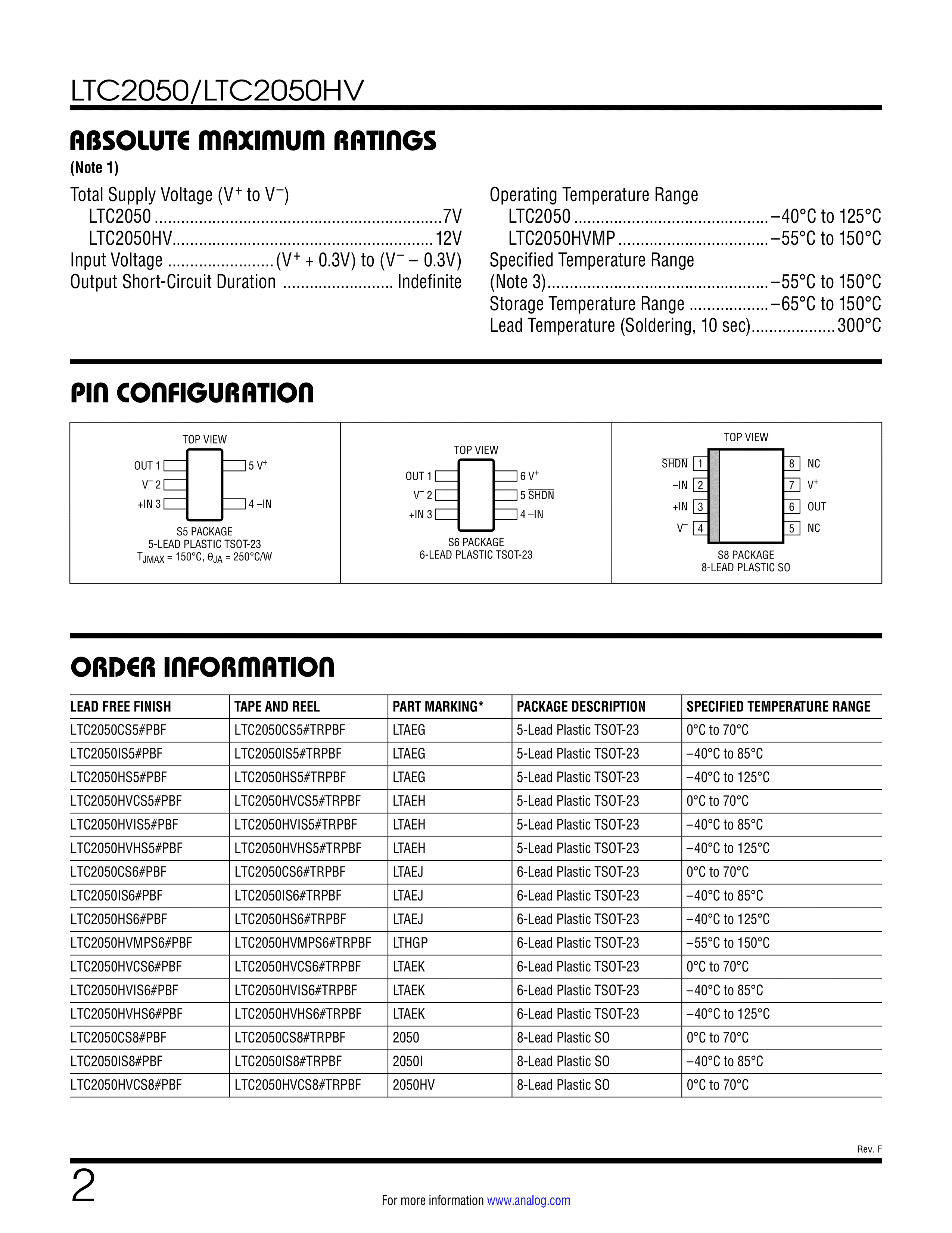 LTC2050HVHS6#TRPBF数据手册TSOT-23-6封装ADI(亚德诺)-LINEARPD