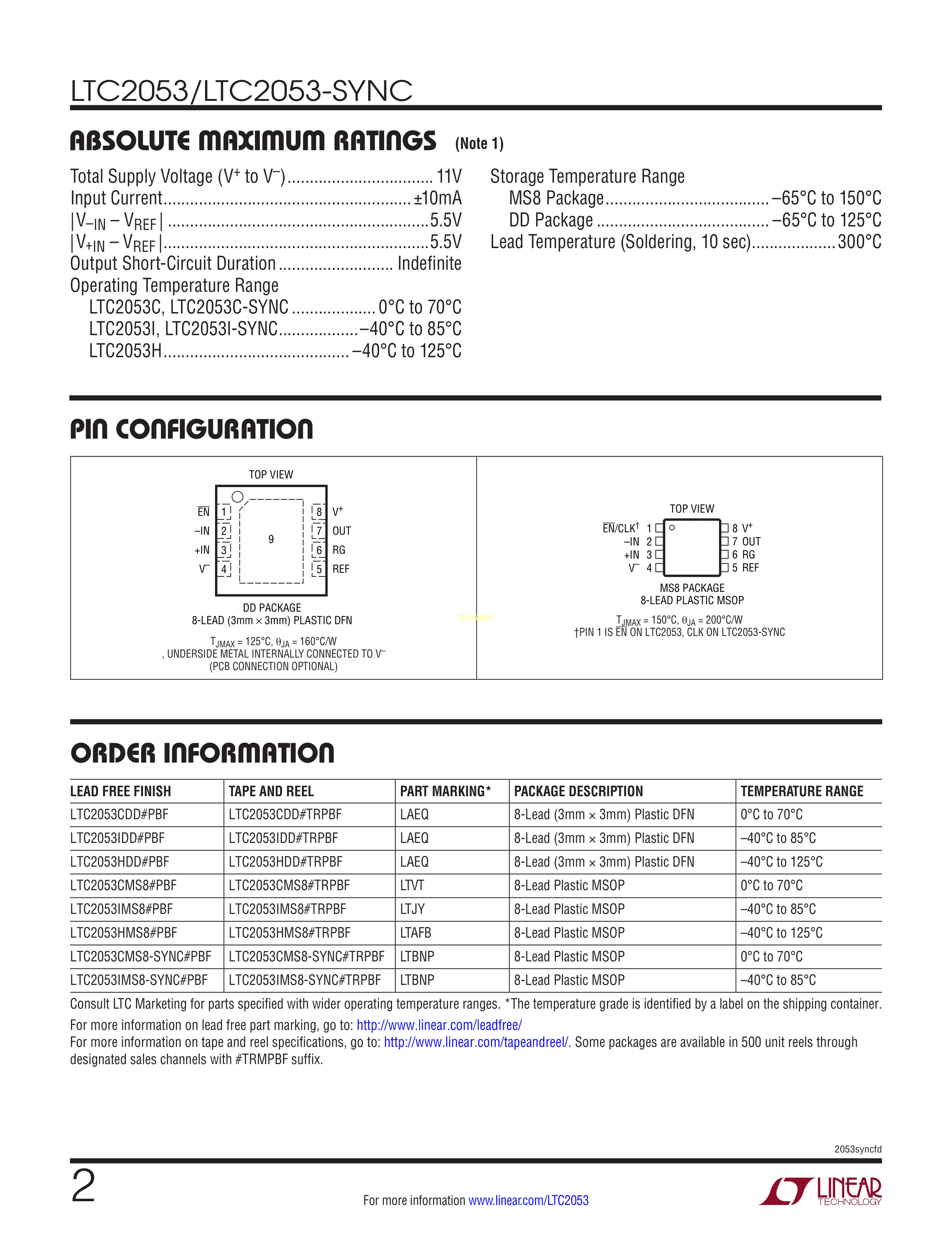 LTC2053IDD#TRPBF数据手册DFN-8封装ADI(亚德诺)-LINEARPDF规格书,中英文下载