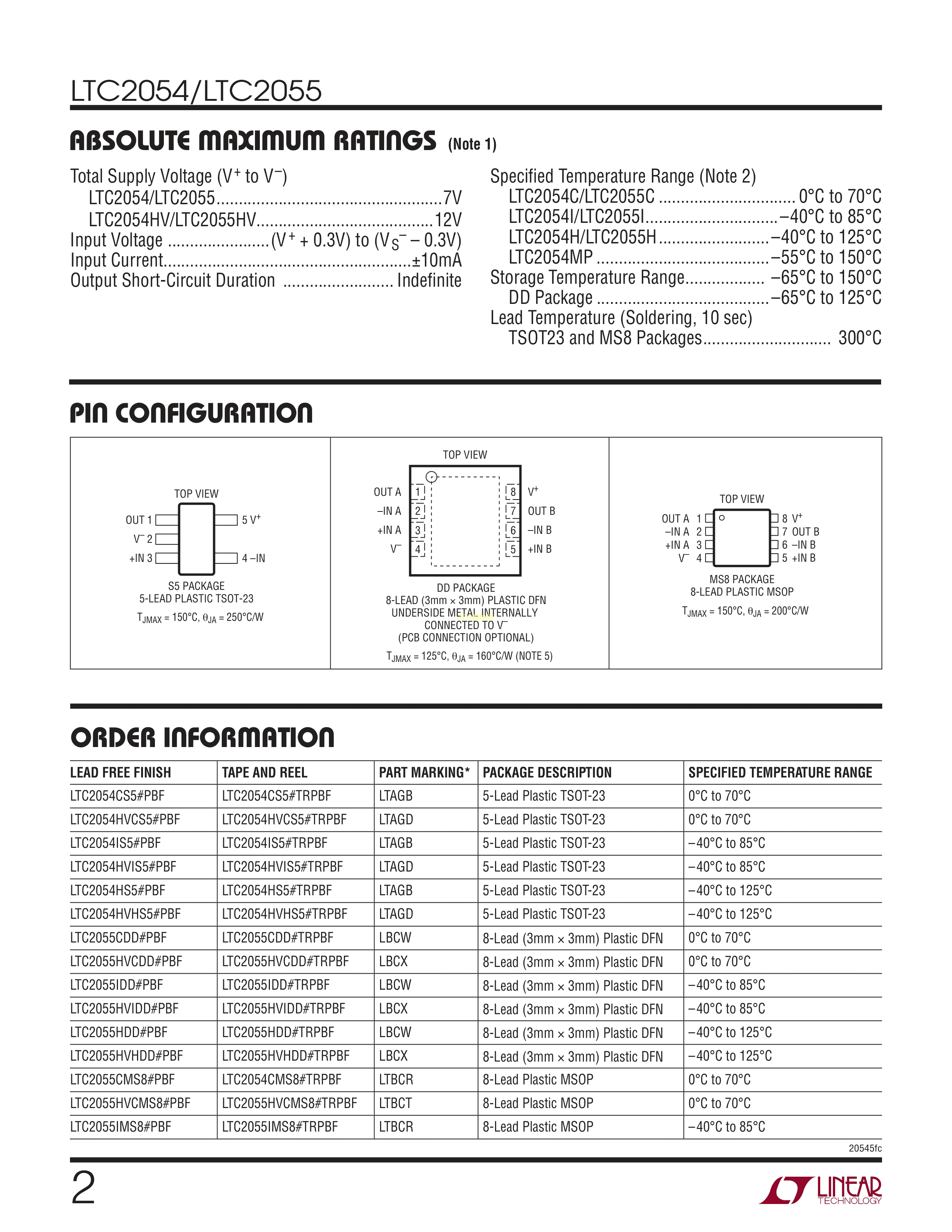 LTC2055HVCMS8#PBF数据手册MSOP-8封装ADI(亚德诺)-LINEARPDF规格书,中英文下载