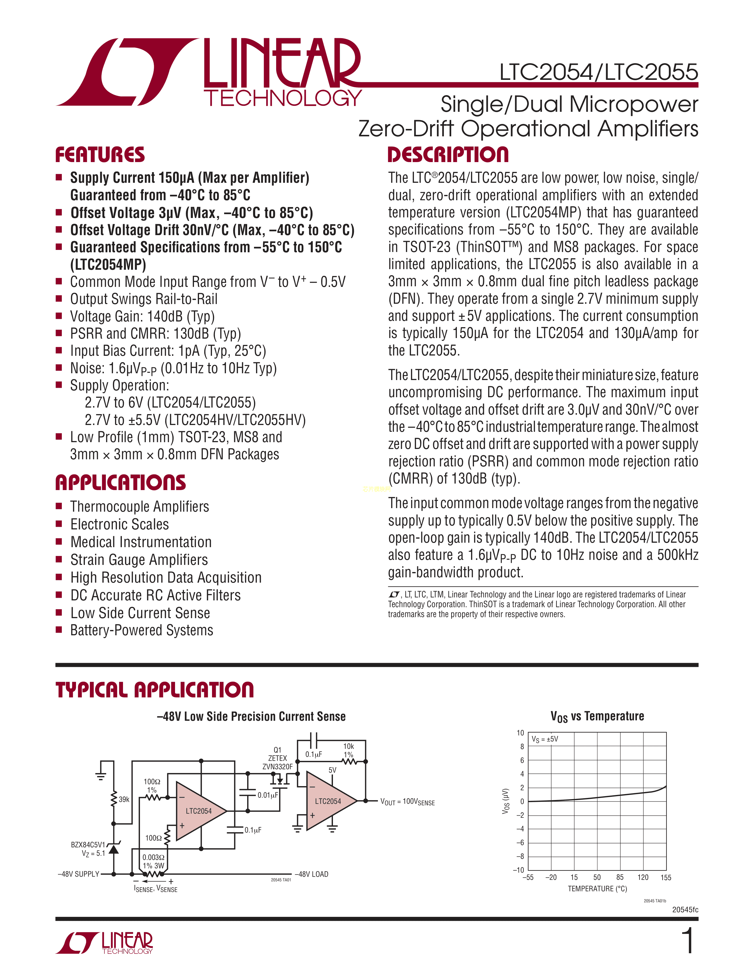 LTC2055HVIDD#TRPBF数据手册DFN-8封装ADI(亚德诺)-LINEARPDF规格书,中英文下载