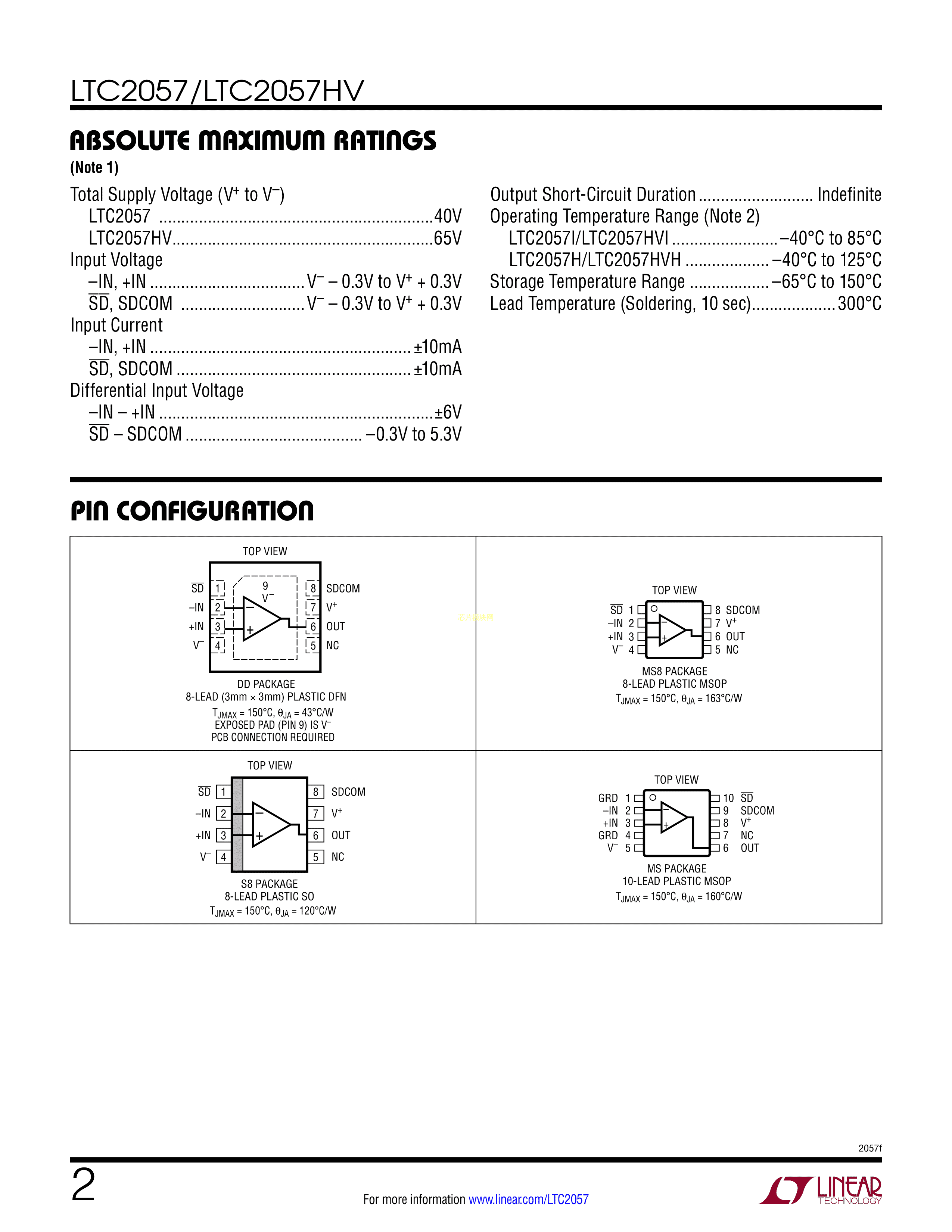 LTC2057HS8#PBF数据手册SO-8封装ADI(亚德诺)-LINEARPDF规格书,中英文下载