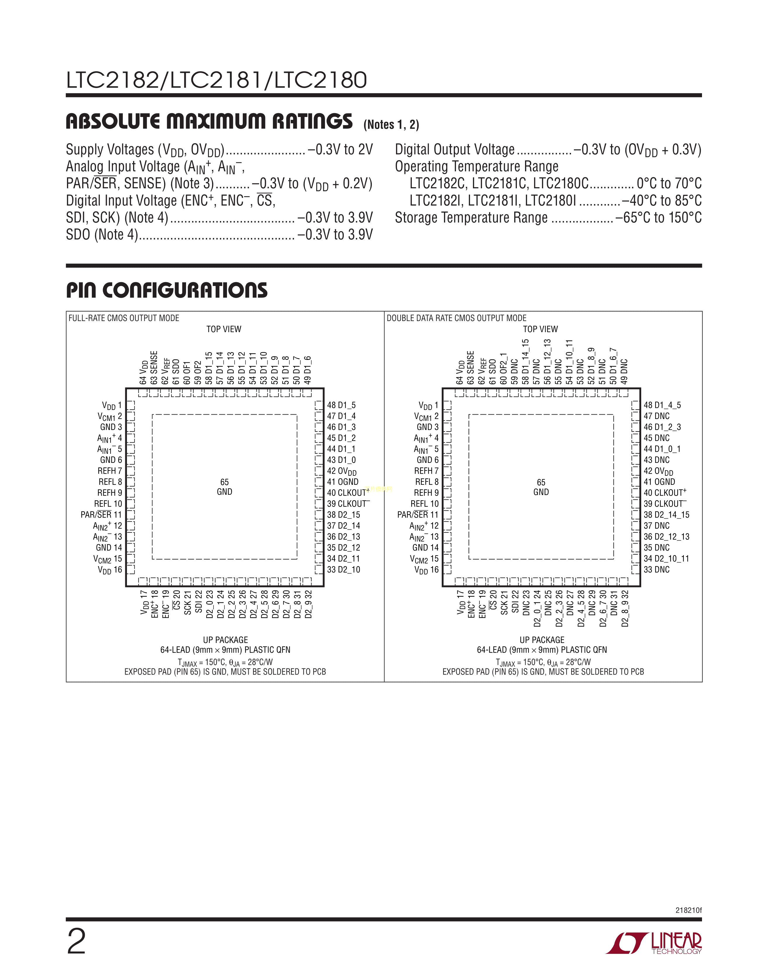 LTC2182CUP#TRPBF数据手册QFN-64封装ADI(亚德诺)-LINEARPDF规格书,中英文下载