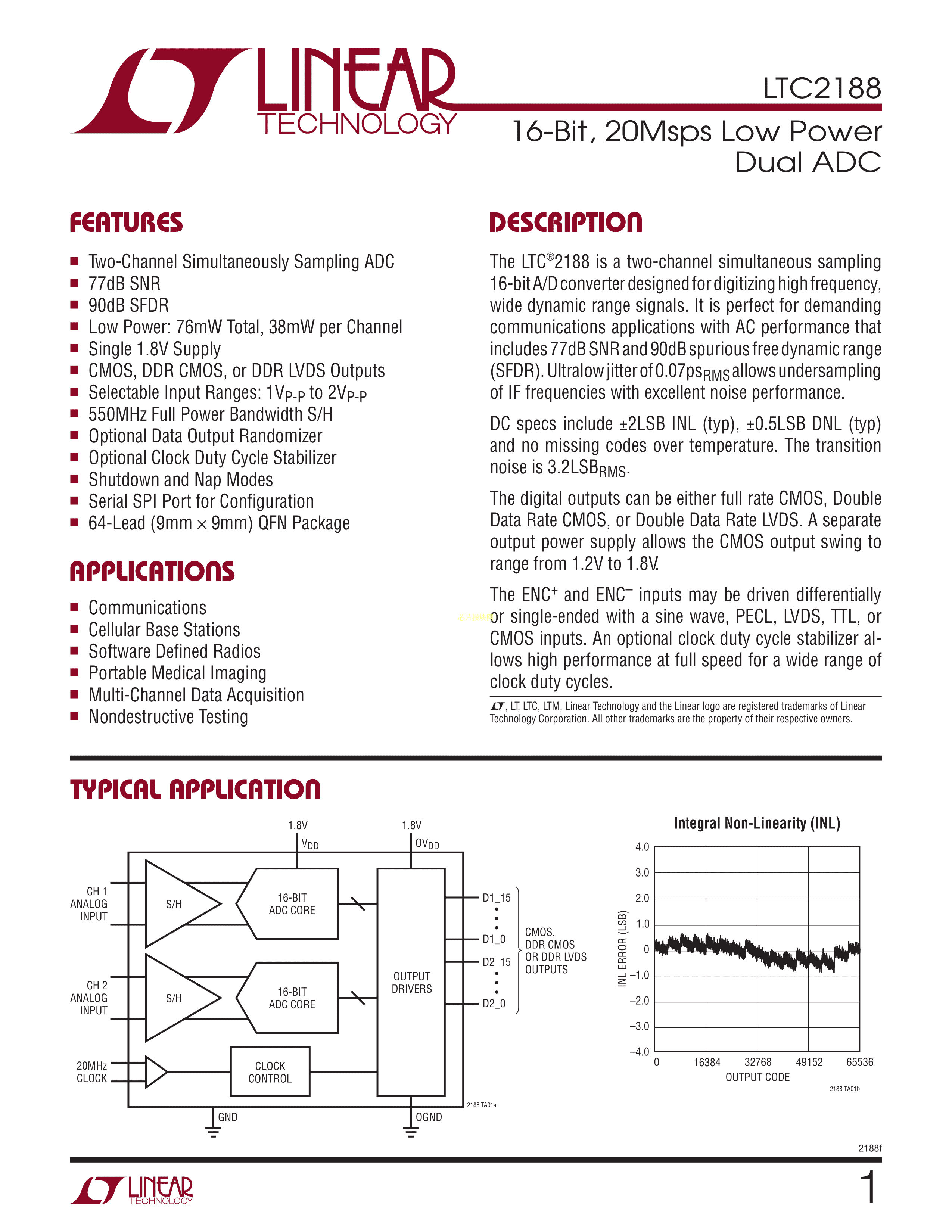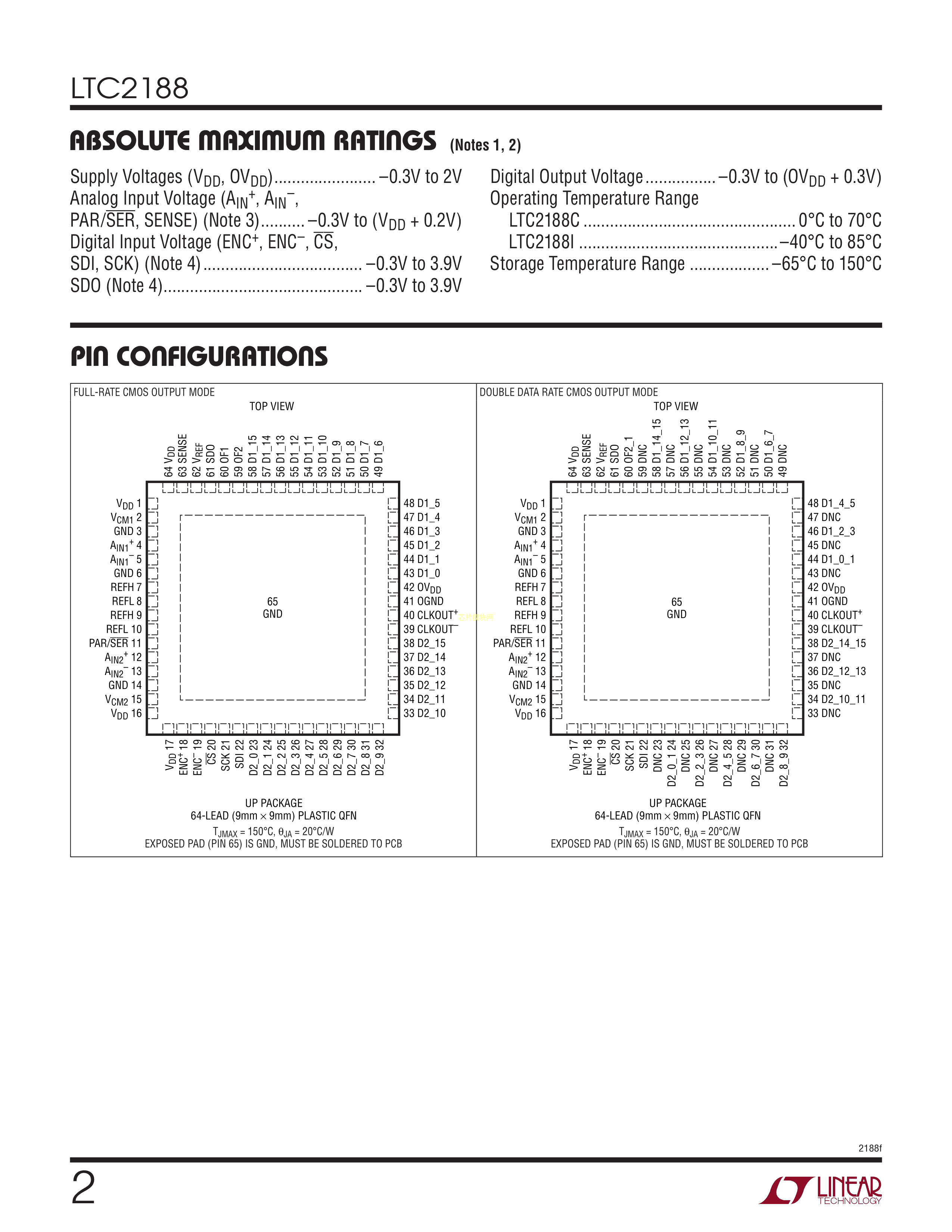 LTC2188CUP#TRPBF数据手册QFN-64封装ADI(亚德诺)-LINEARPDF规格书,
