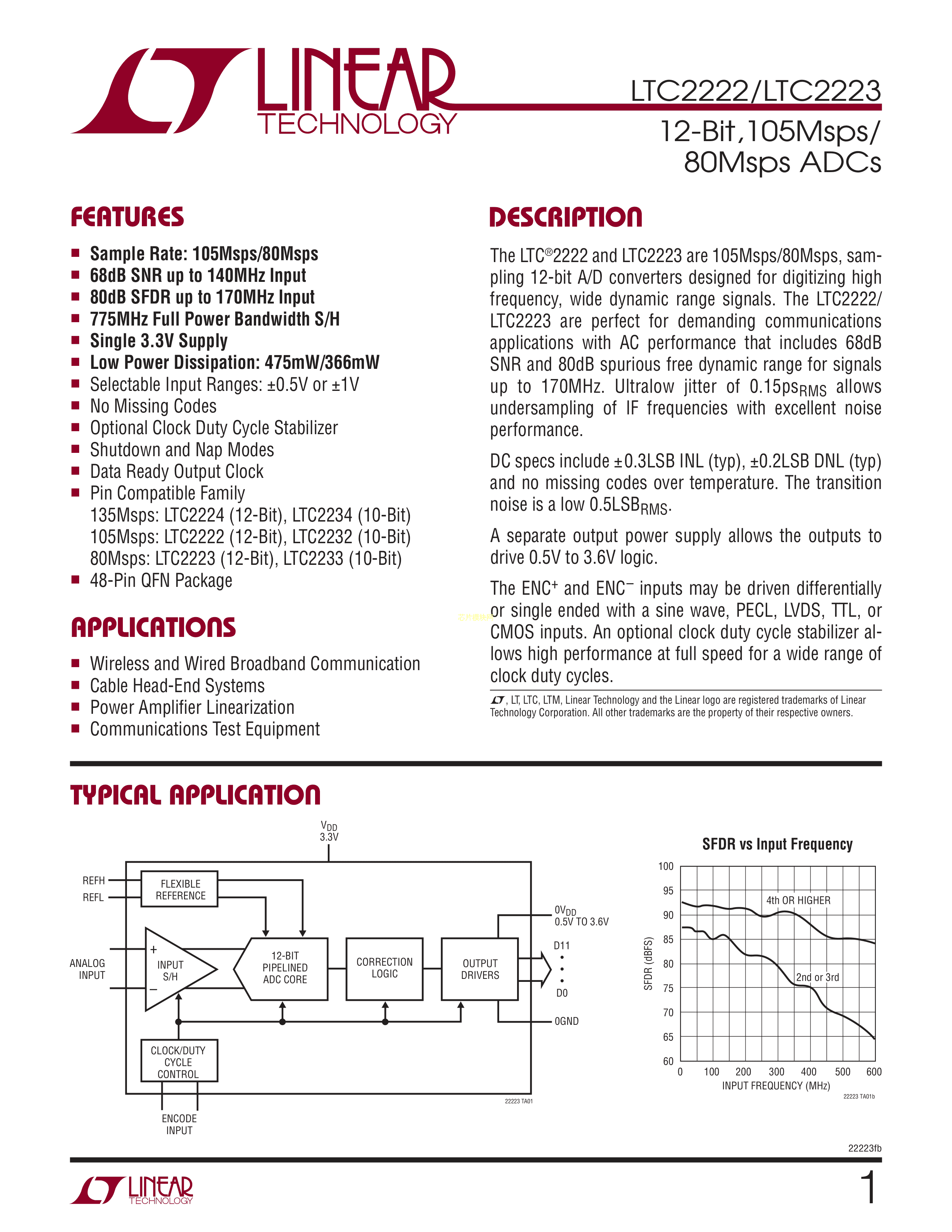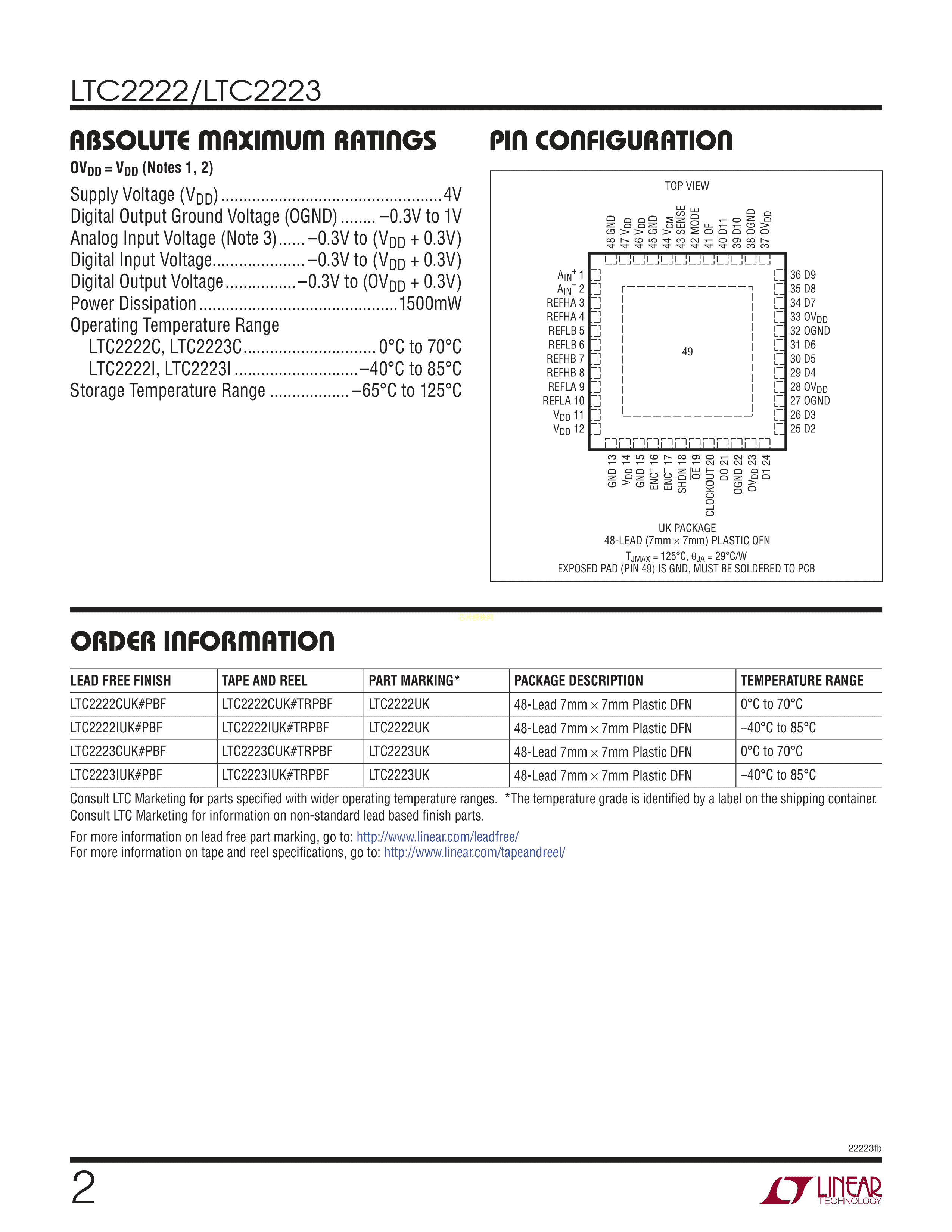 LTC2222IUK#PBF数据手册QFN-48封装ADI(亚德诺)-LINEARPDF规格书,中英