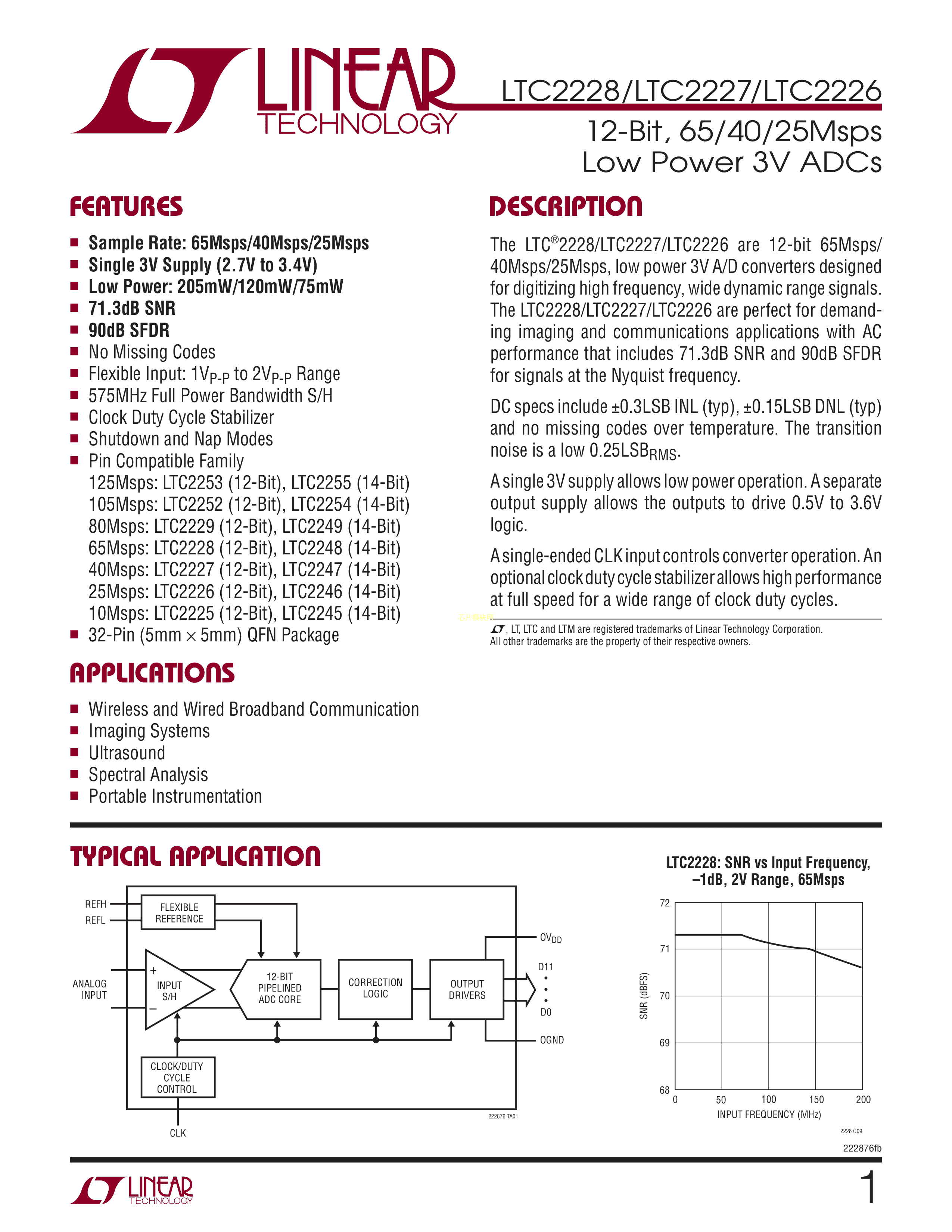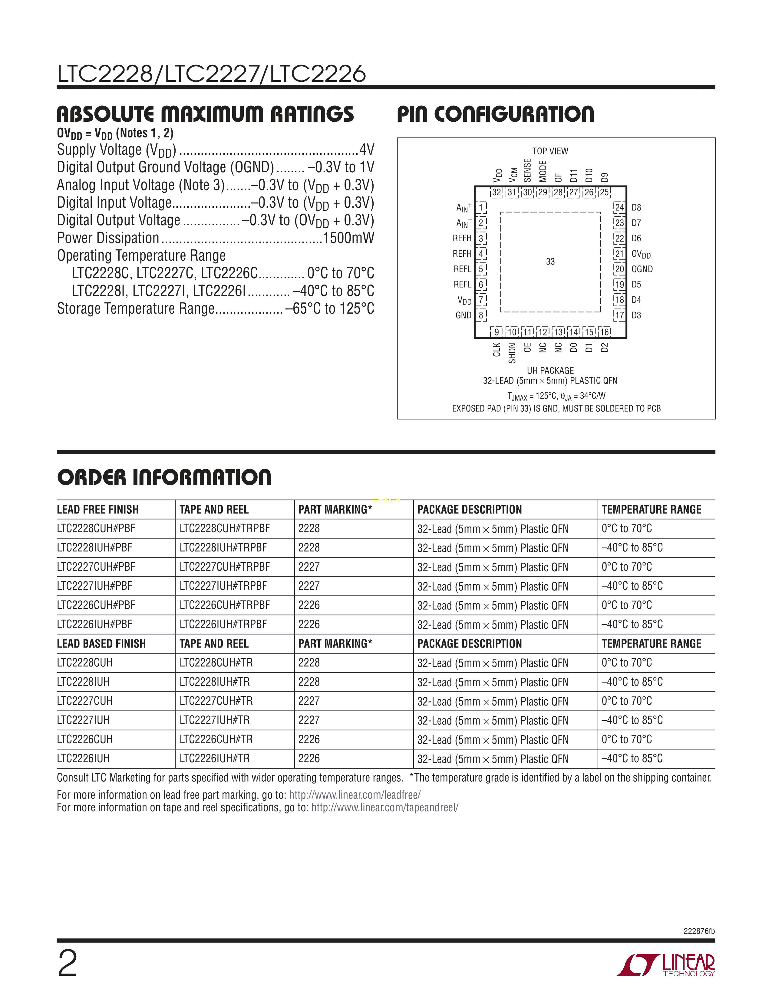 LTC2227CUH#PBF数据手册QFN-32封装ADI(亚德诺)-LINEARPDF规格书,中英