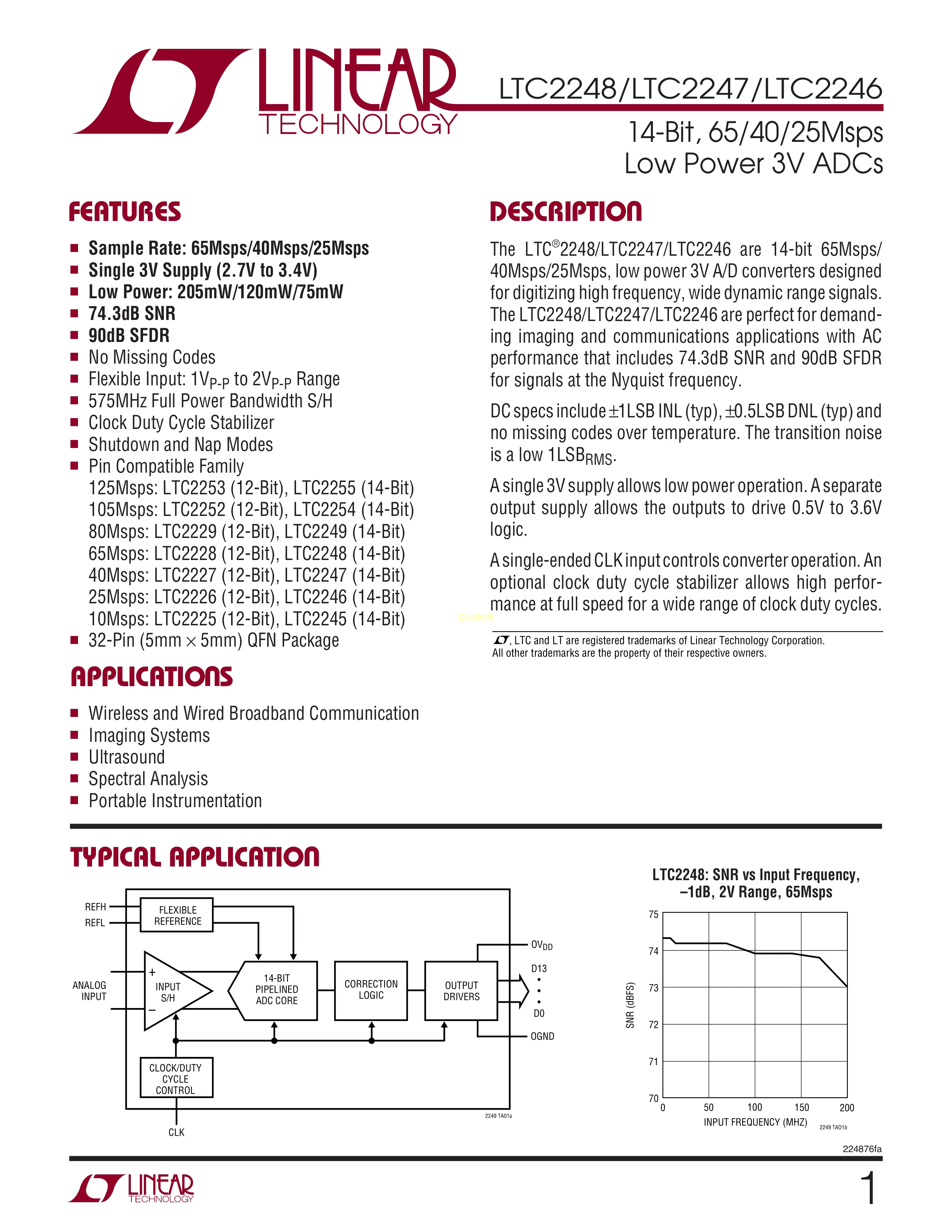 LTC2248CUH#TRPBF数据手册QFN-32封装ADI(亚德诺)-LINEARPDF规格书,