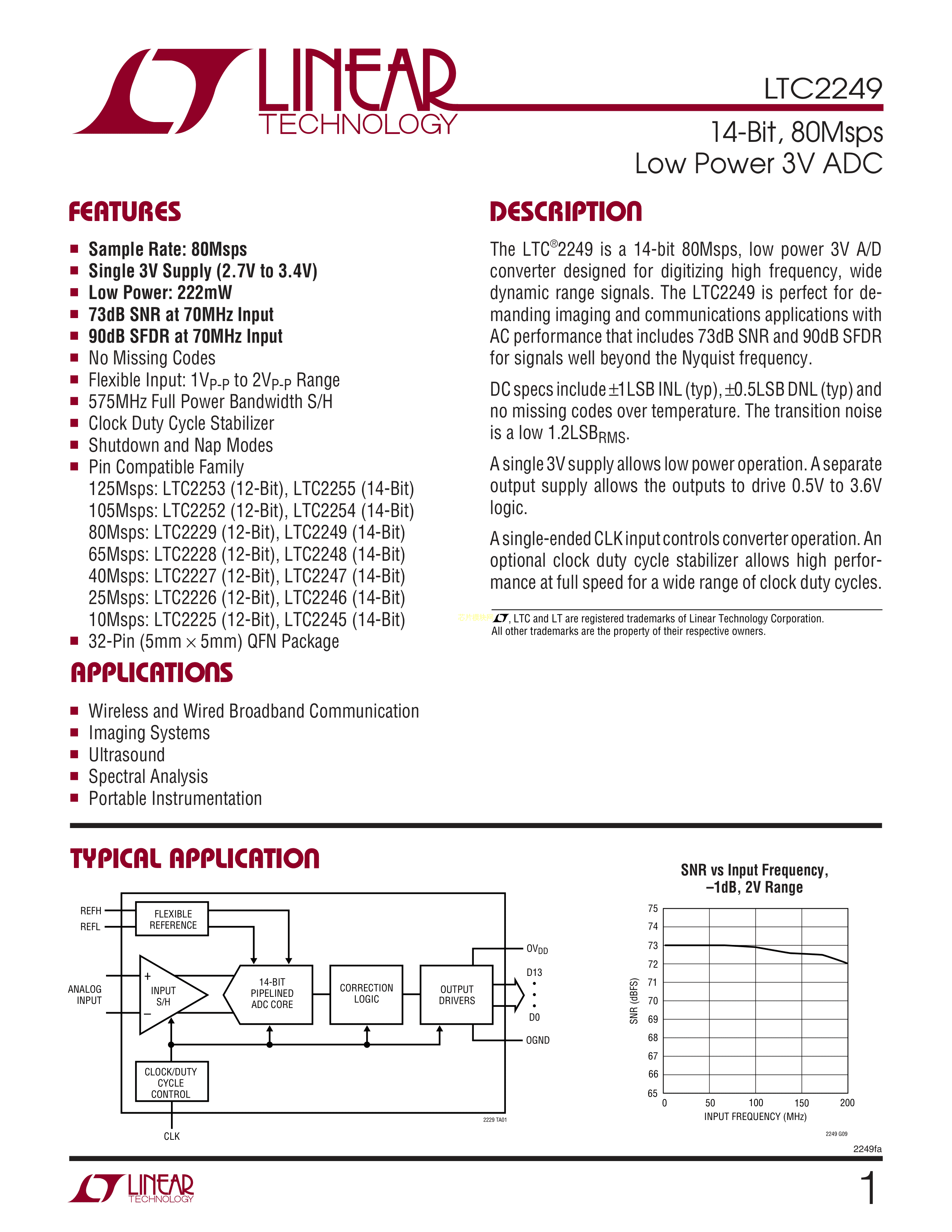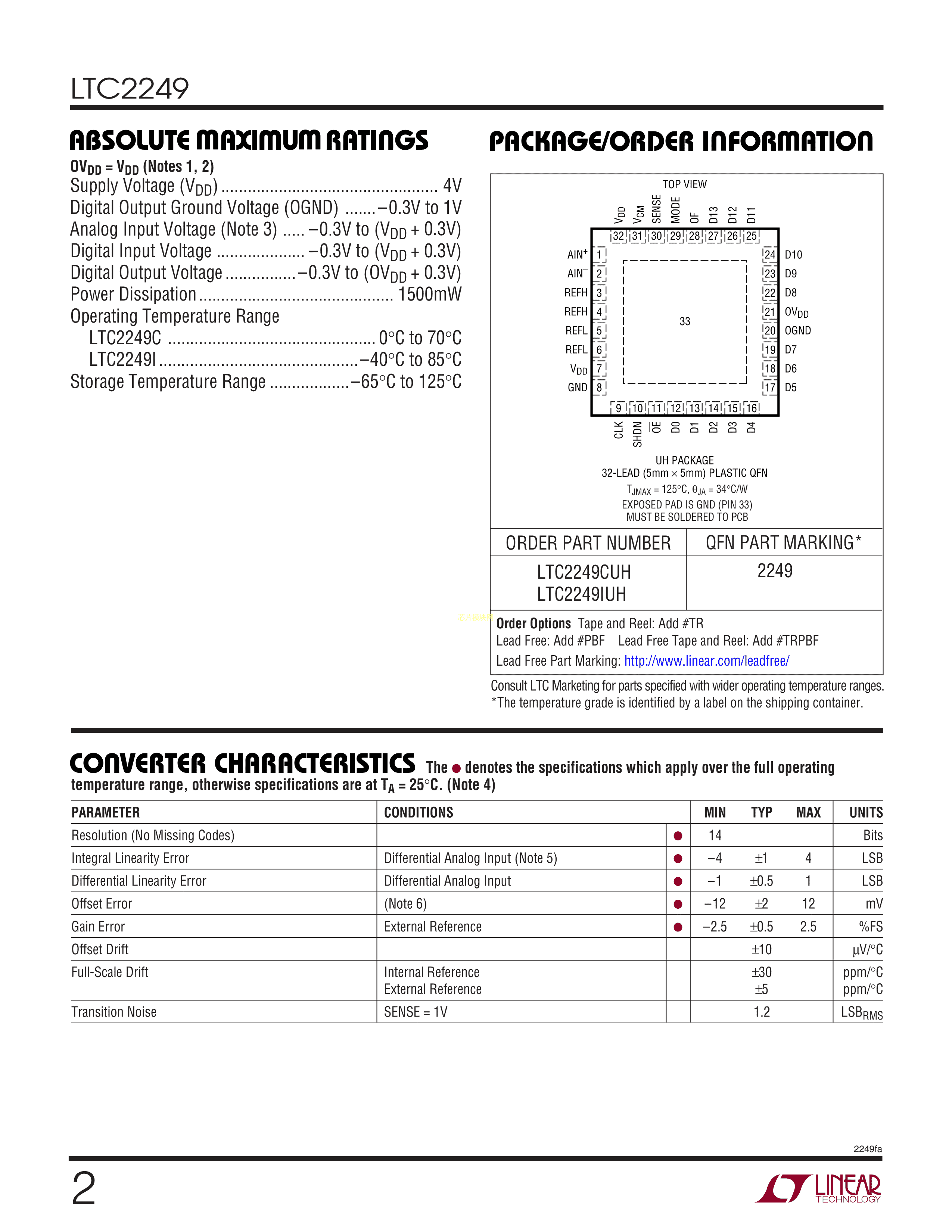 LTC2249CUH#TRPBF数据手册QFN-32封装ADI(亚德诺)-LINEARPDF规格书,