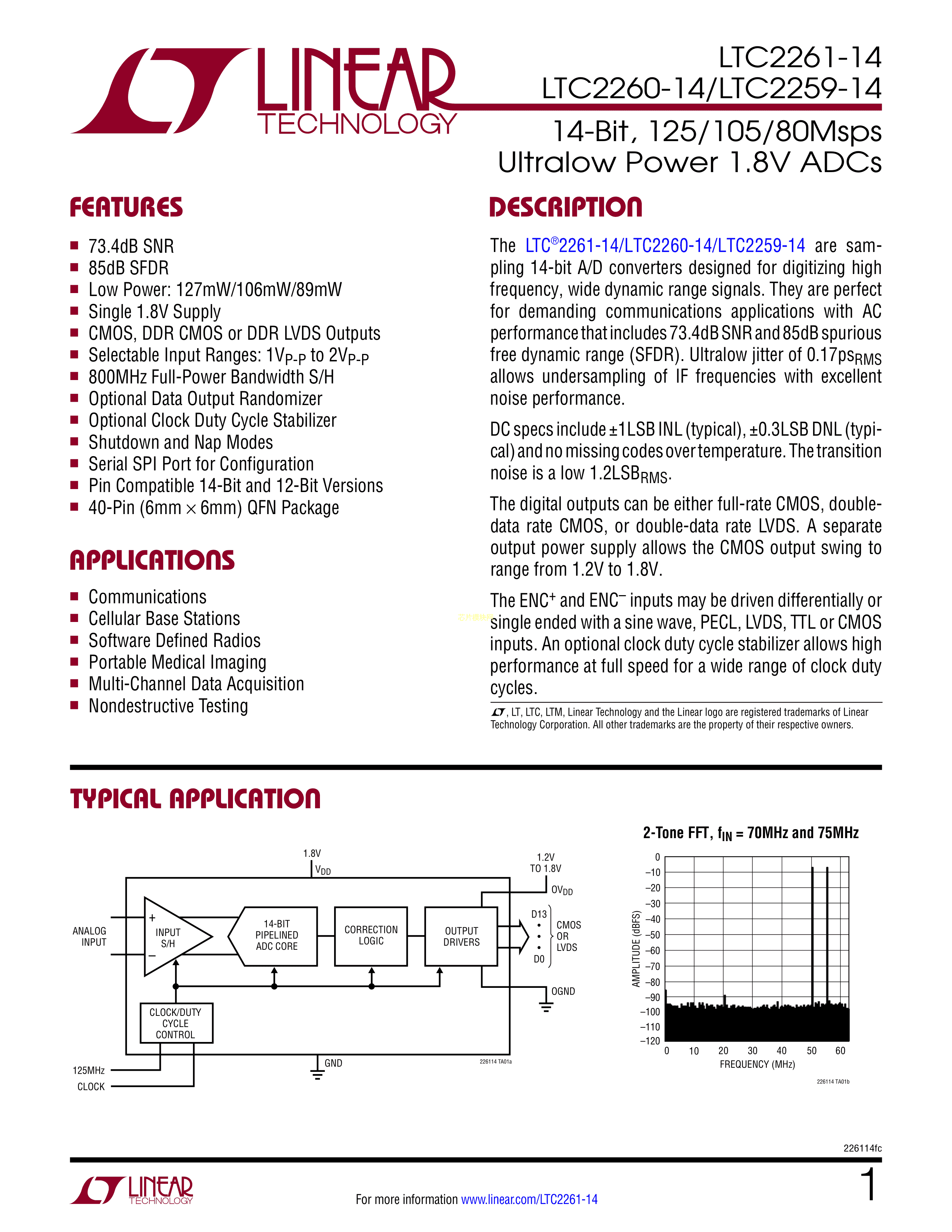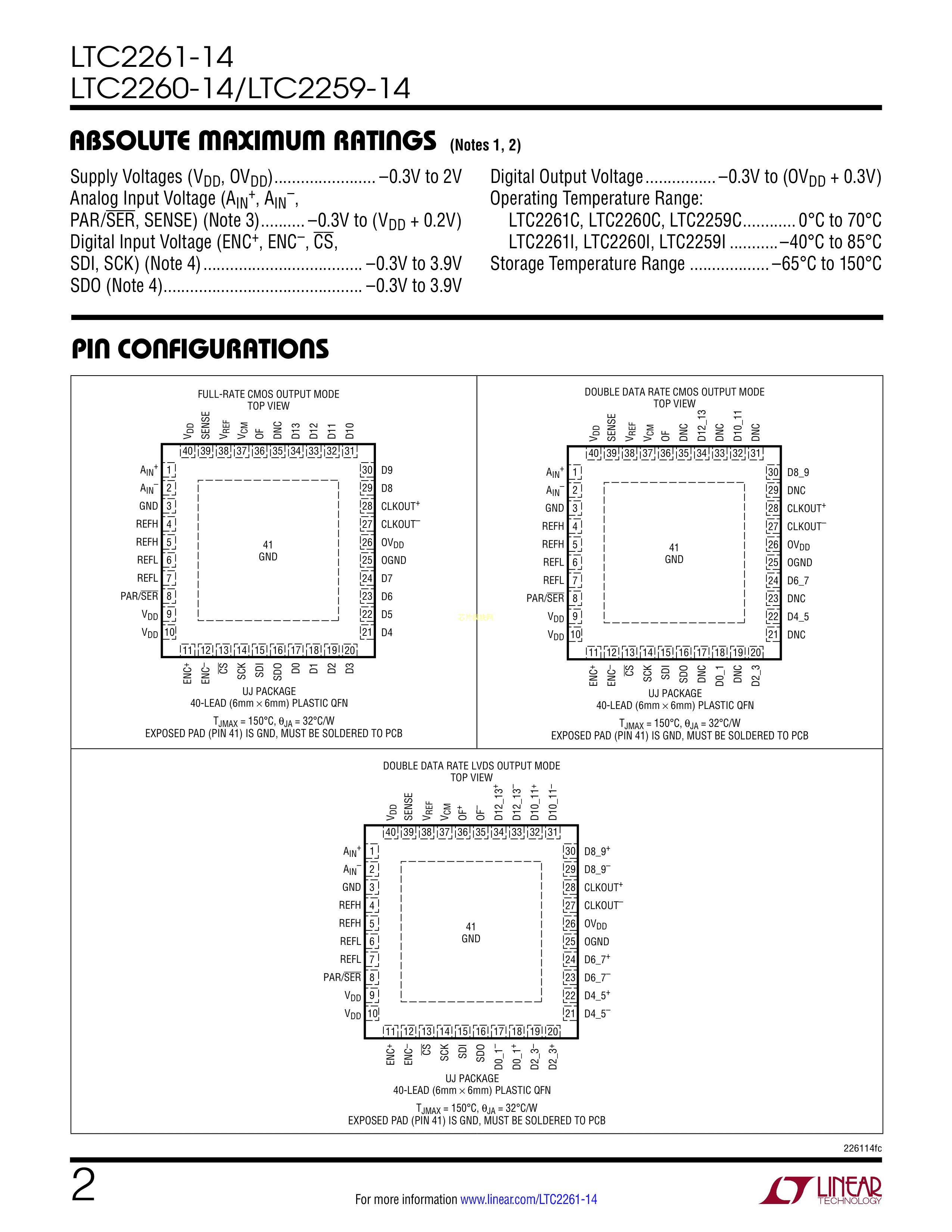 LTC2259CUJ-14#PBF数据手册QFN-40封装ADI(亚德诺)-LINEARPDF规格书