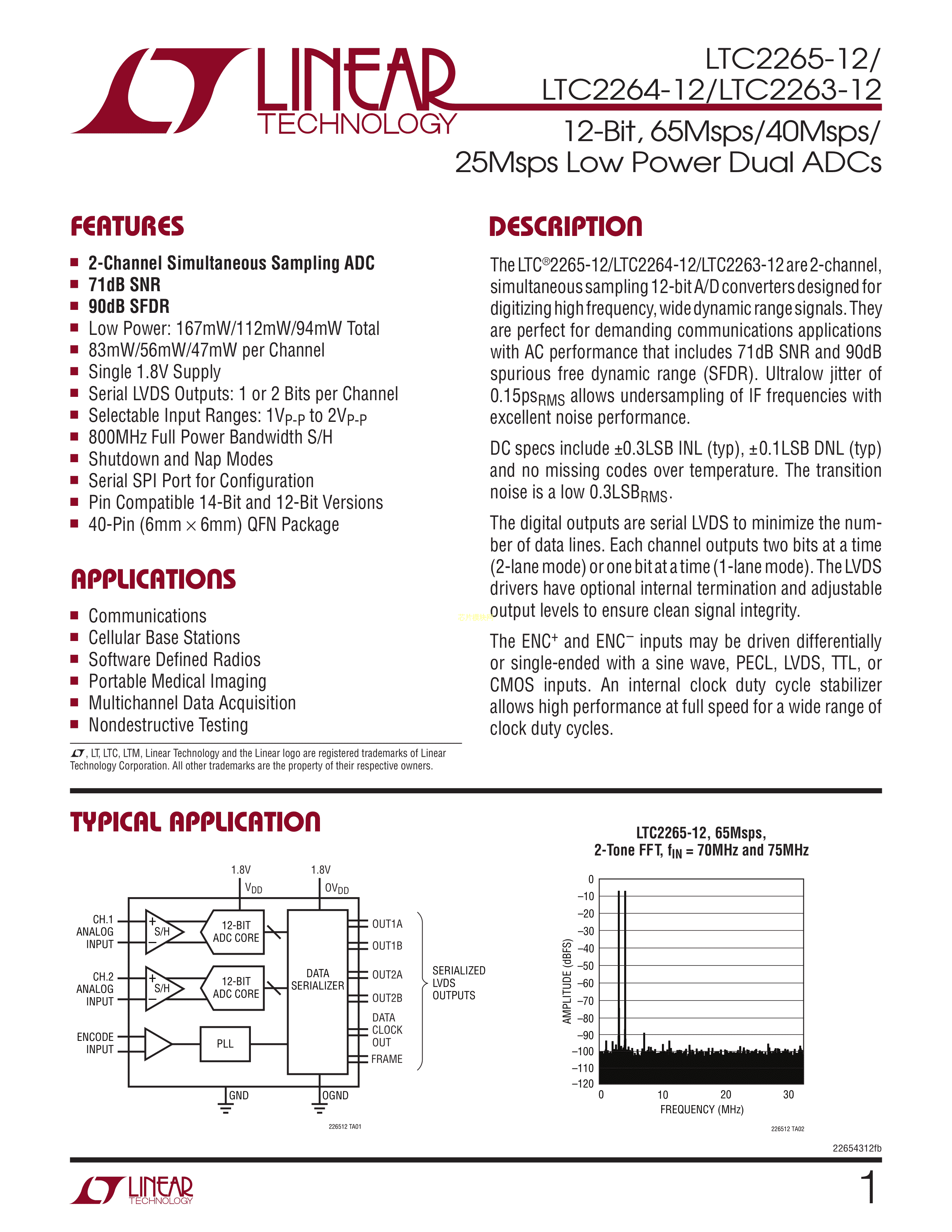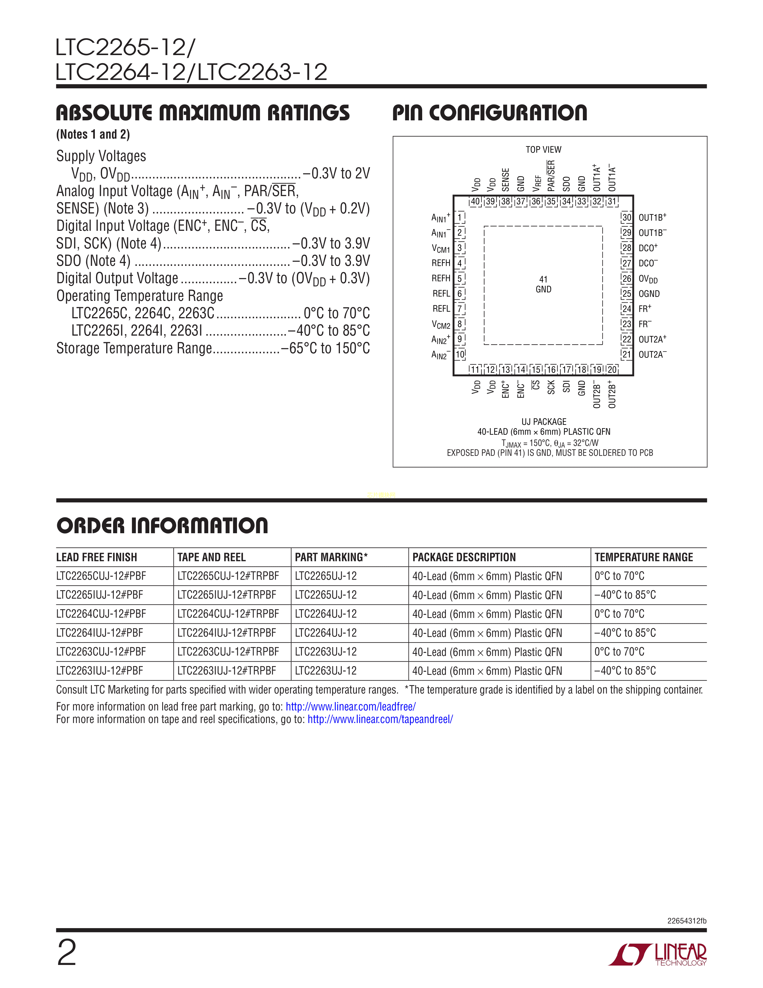 LTC2264CUJ-12#PBF数据手册QFN-40封装ADI(亚德诺)-LINEARPDF规格书