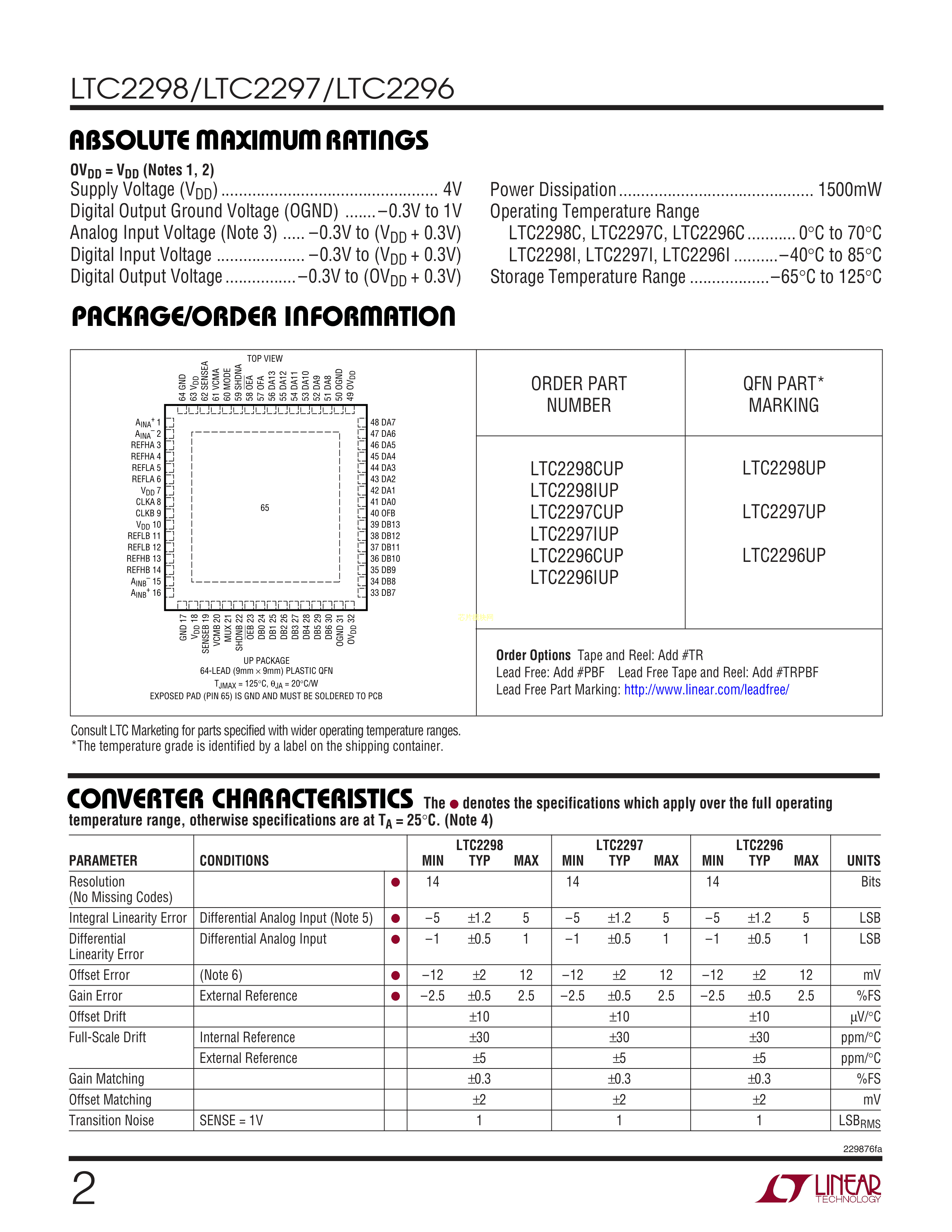 LTC2297IUP#PBF数据手册QFN-64封装ADI(亚德诺)-LINEARPDF规格书,中英文下载