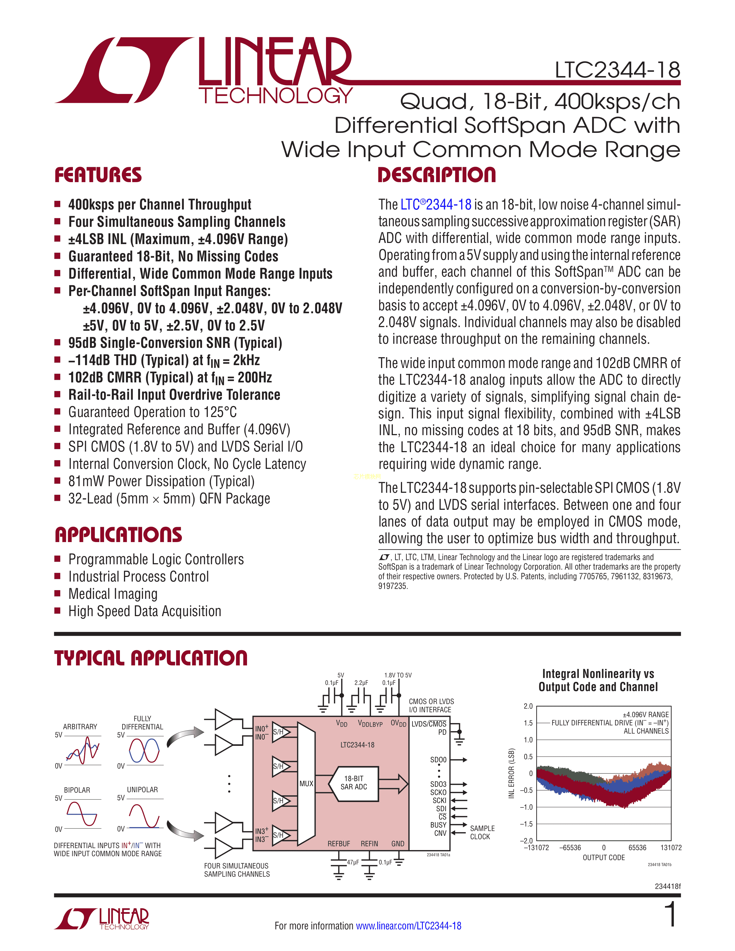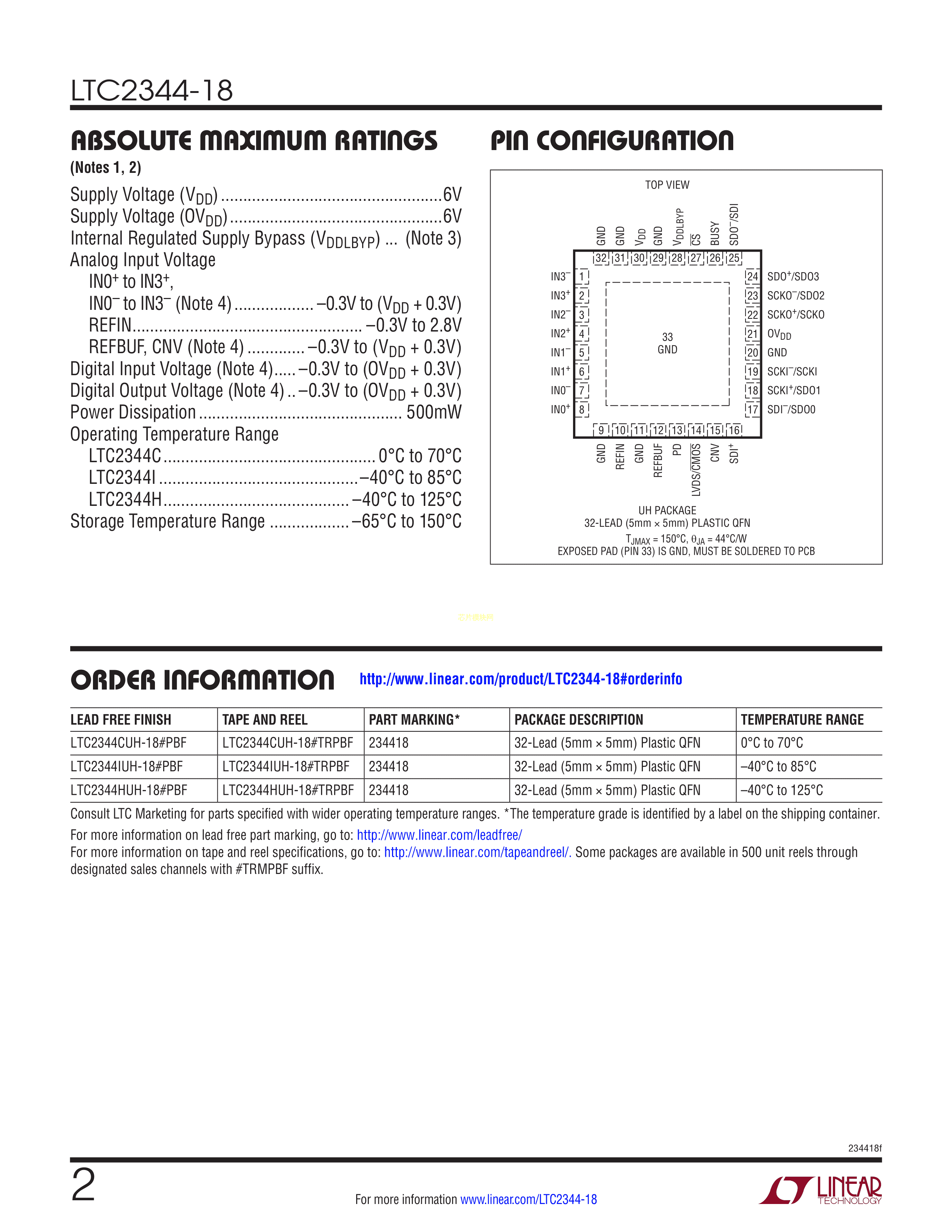 LTC2344IUH-18#TRPBF数据手册QFN-32封装ADI(亚德诺)-LINEARPDF规