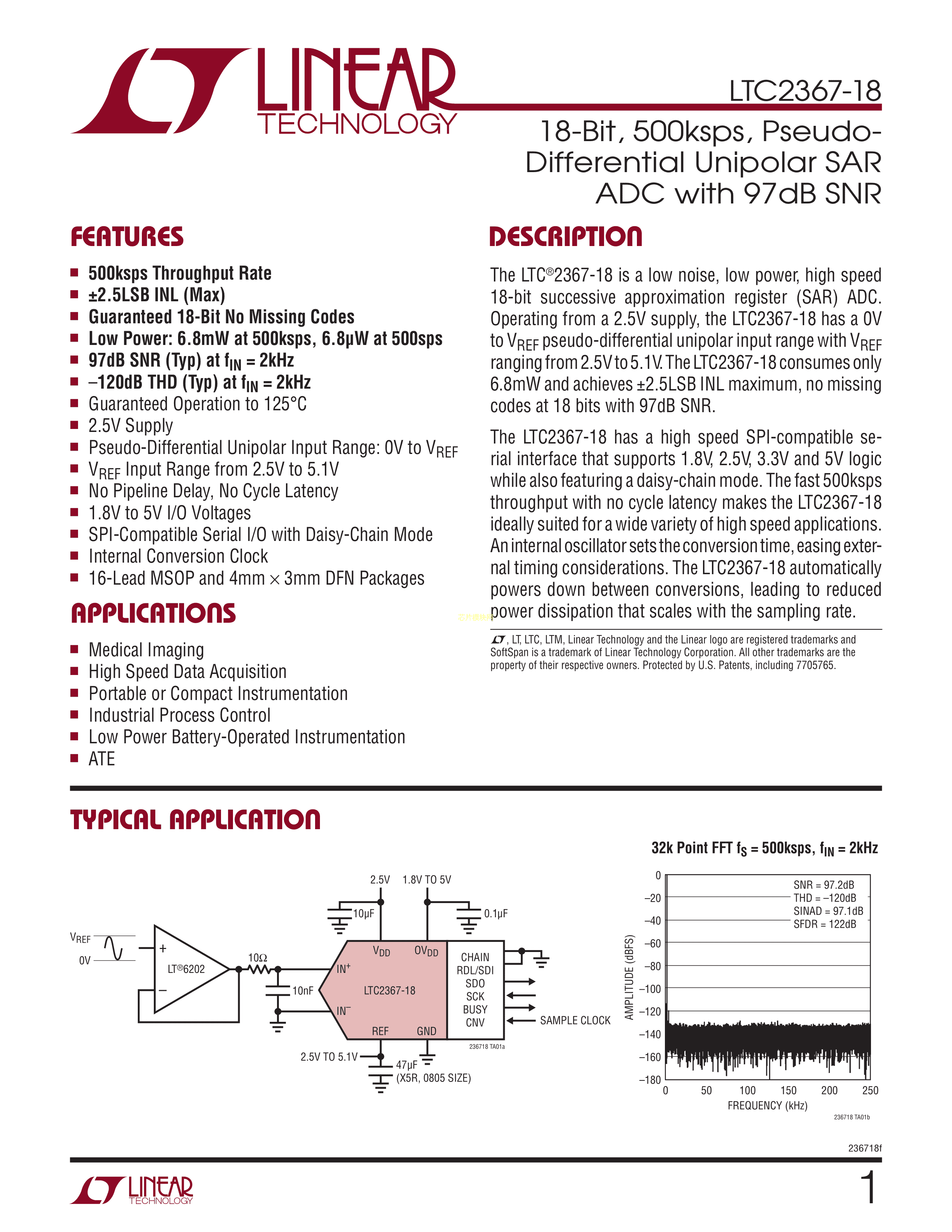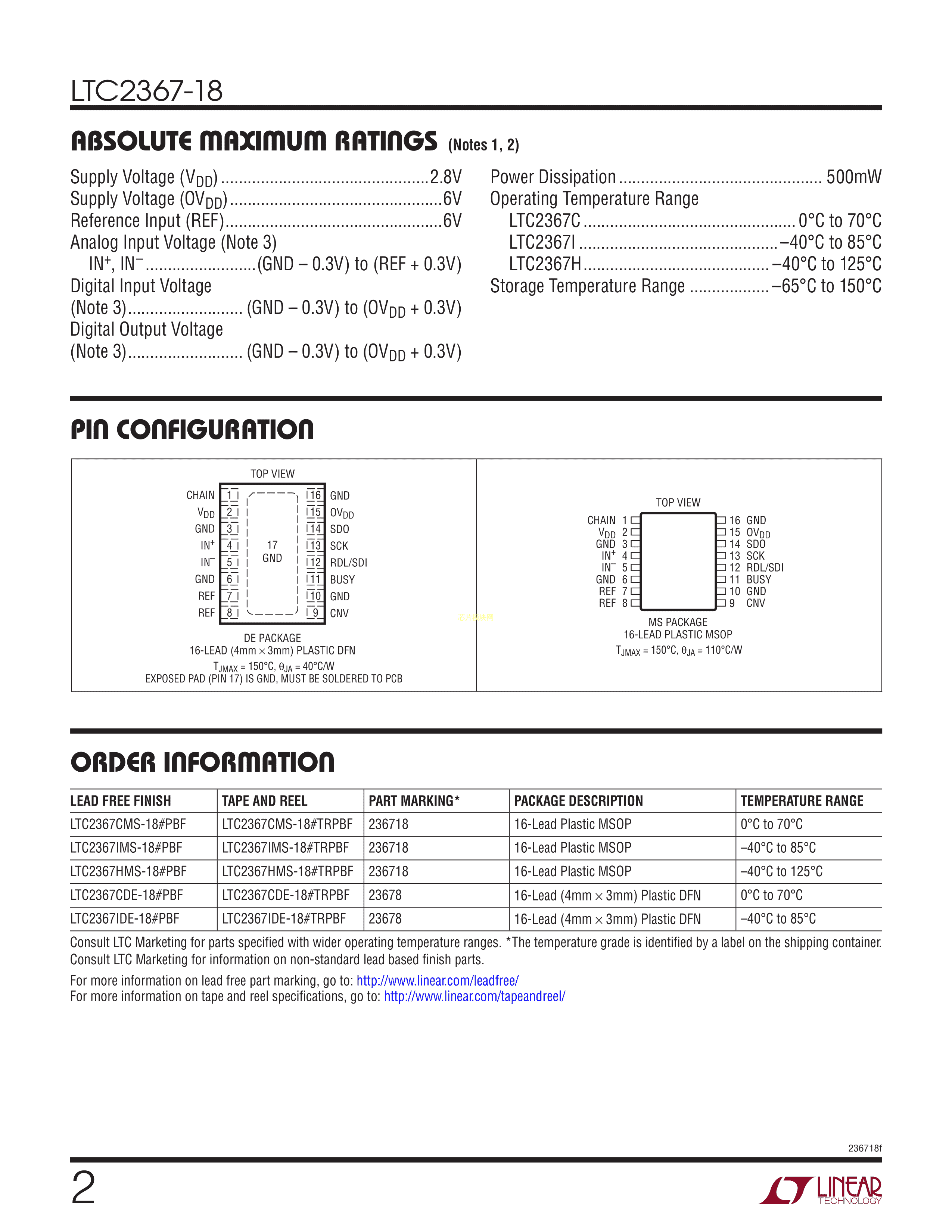 LTC2367HMS-18#PBF数据手册MSOP-16封装ADI(亚德诺)-LINEARPDF规格