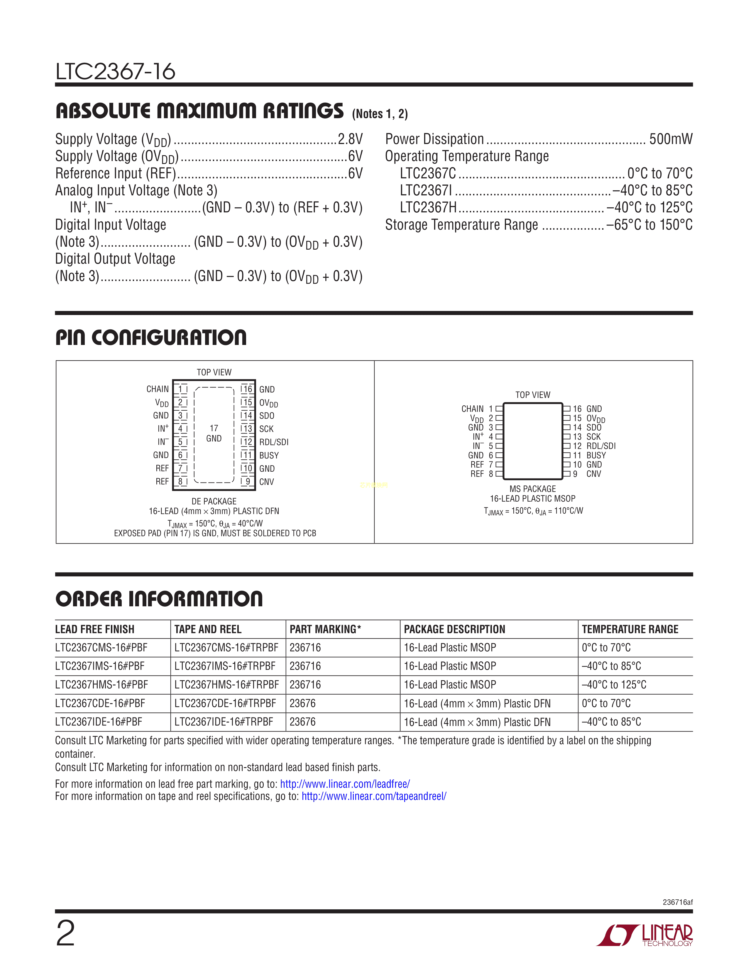 LTC2367IMS-16#TRPBF数据手册MSOP-16封装ADI(亚德诺)-LINEARPDF