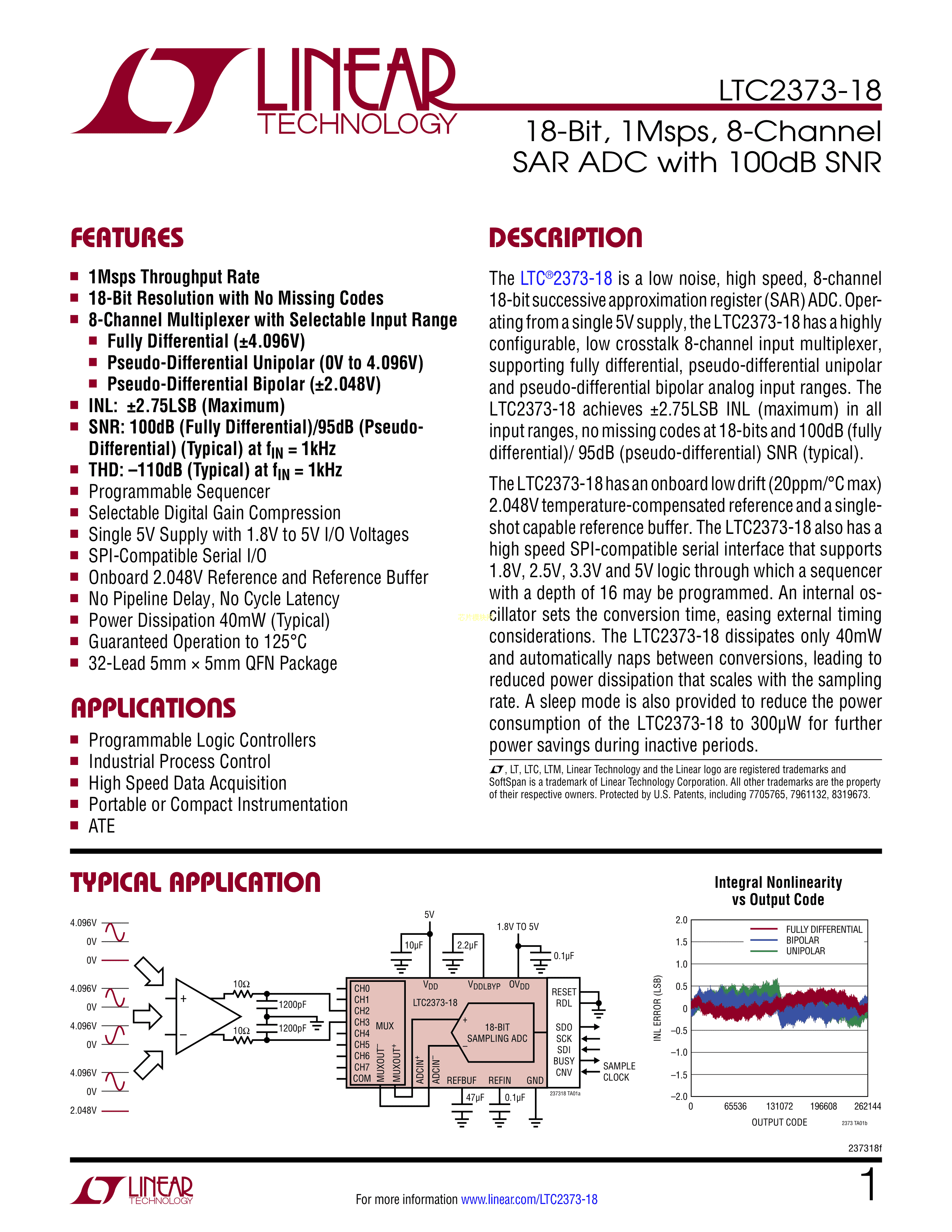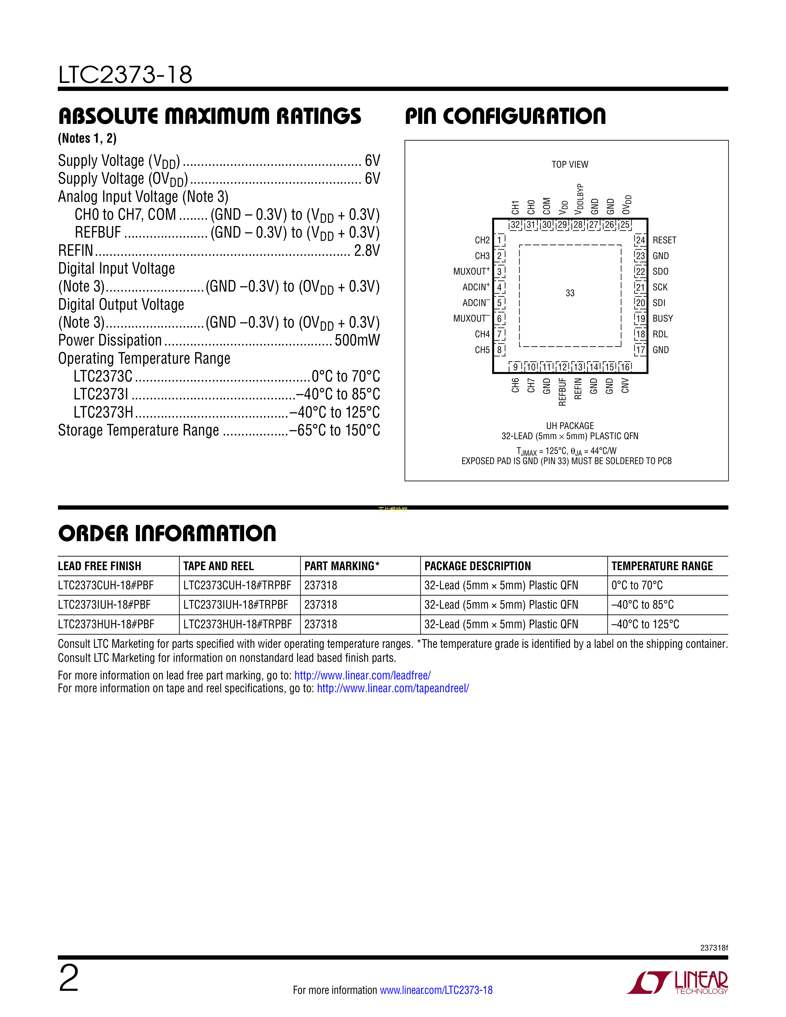 LTC2373HUH-18#TRPBF数据手册QFN-32封装ADI(亚德诺)-LINEARPDF规