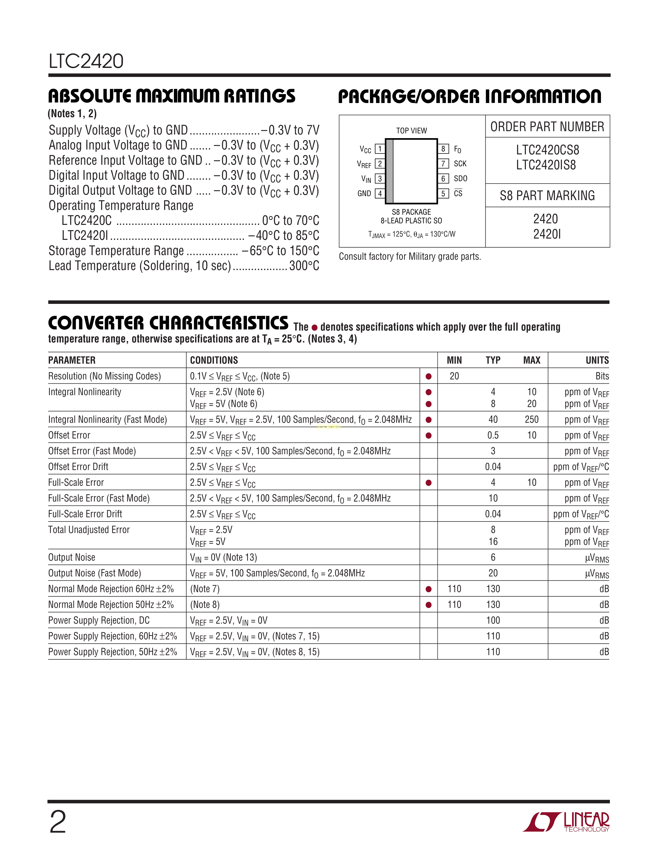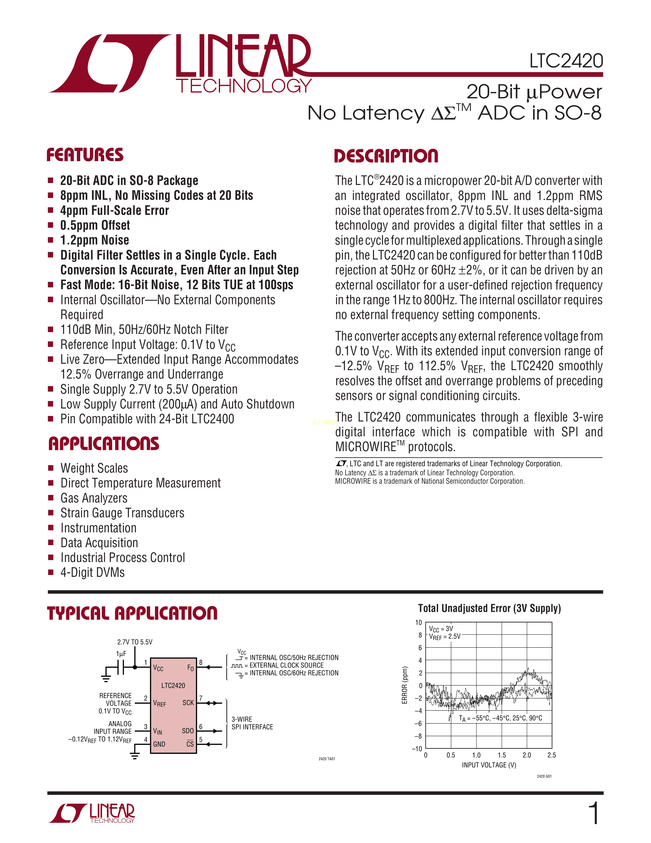 LTC2420CS8#TRPBF数据手册SO-8封装ADI(亚德诺)-LINEARPDF规格书,中英