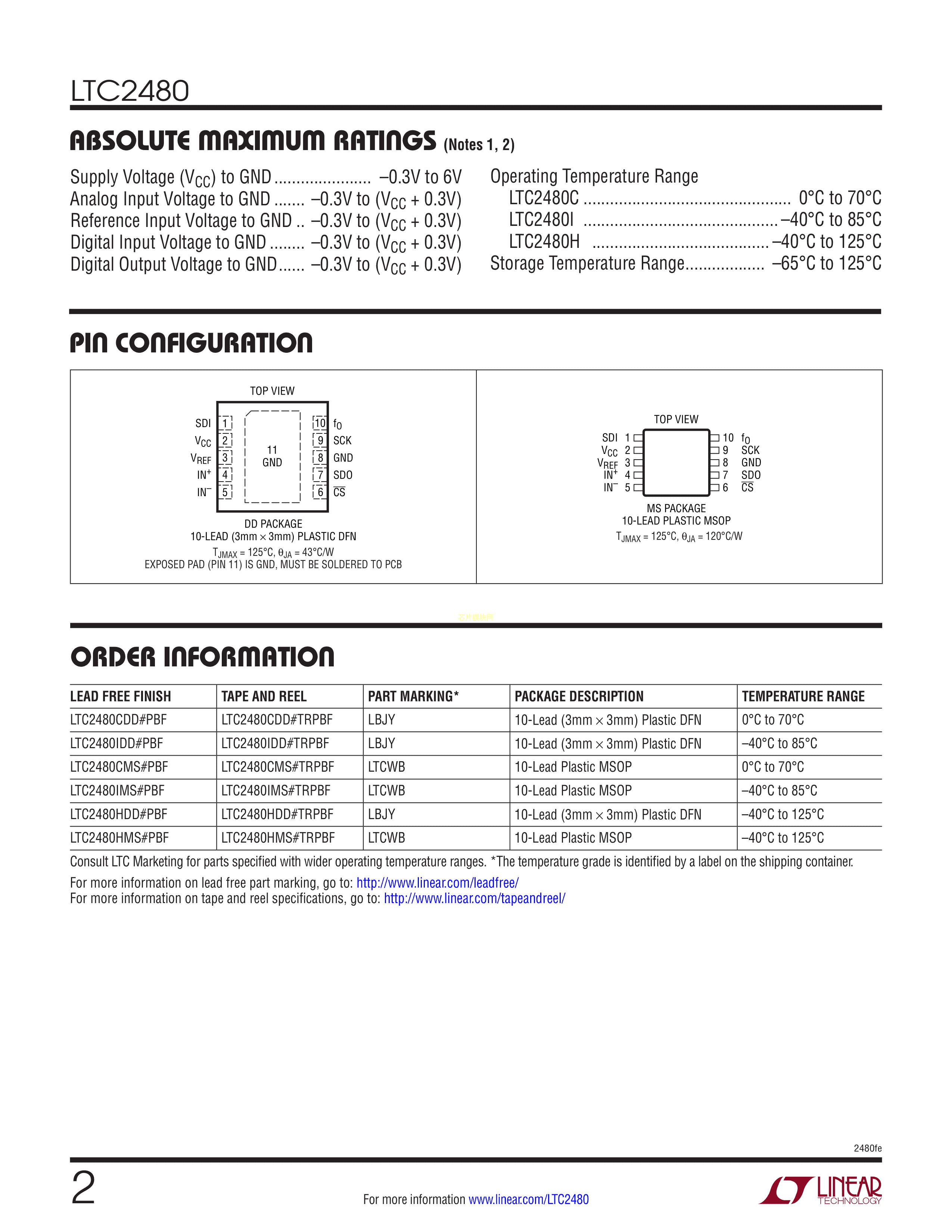 LTC2480CDD#TRPBF数据手册DFN-10(3x3)封装ADI(亚德诺)-LINEARPD