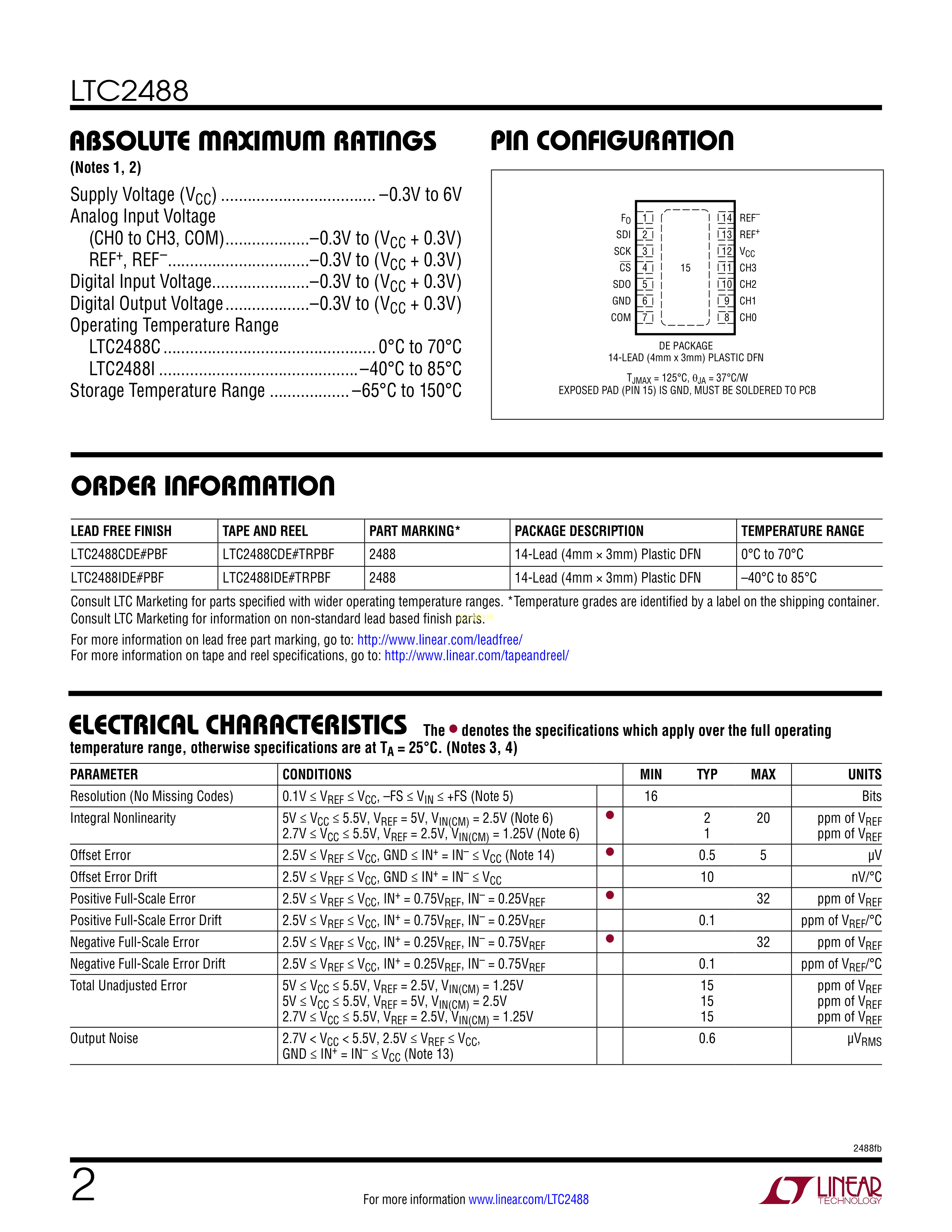 LTC2488CDE#TRPBF数据手册DFN-14(4x3)封装ADI(亚德诺)-LINEARPD