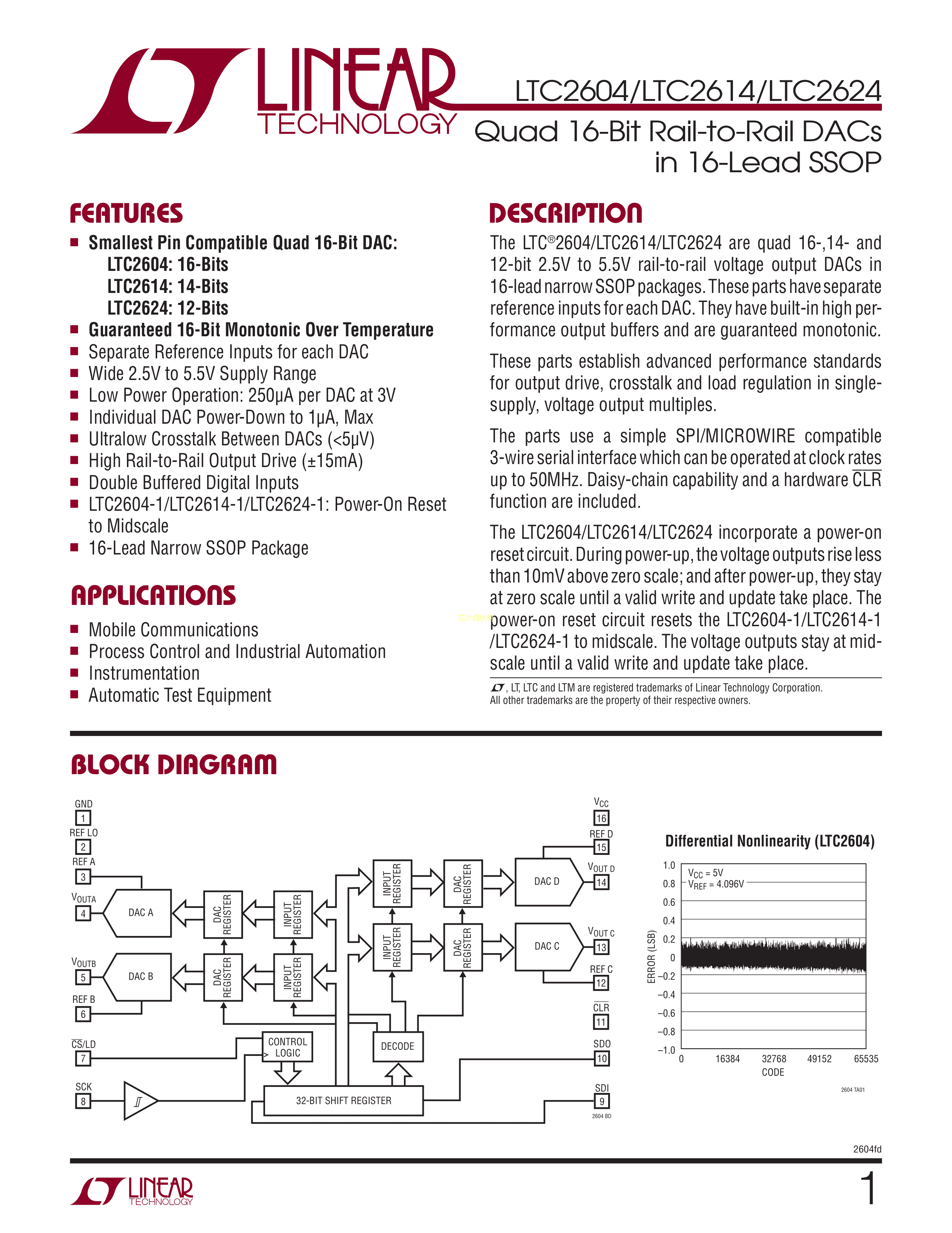 LTC2614IGN#TRPBF数据手册SSOP-16封装ADI(亚德诺)-LINEARPDF规格书