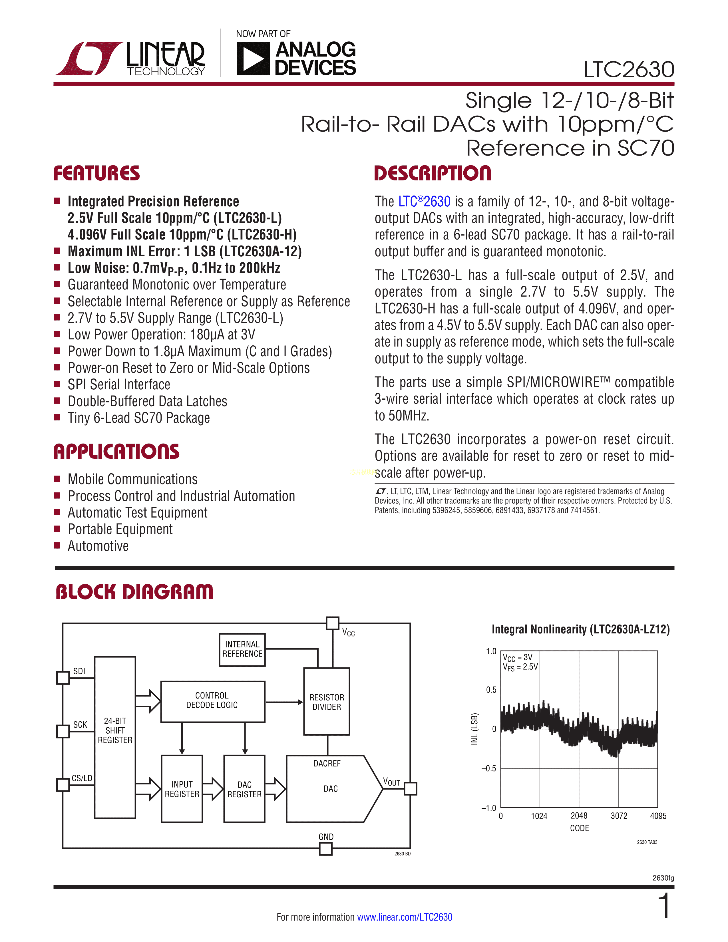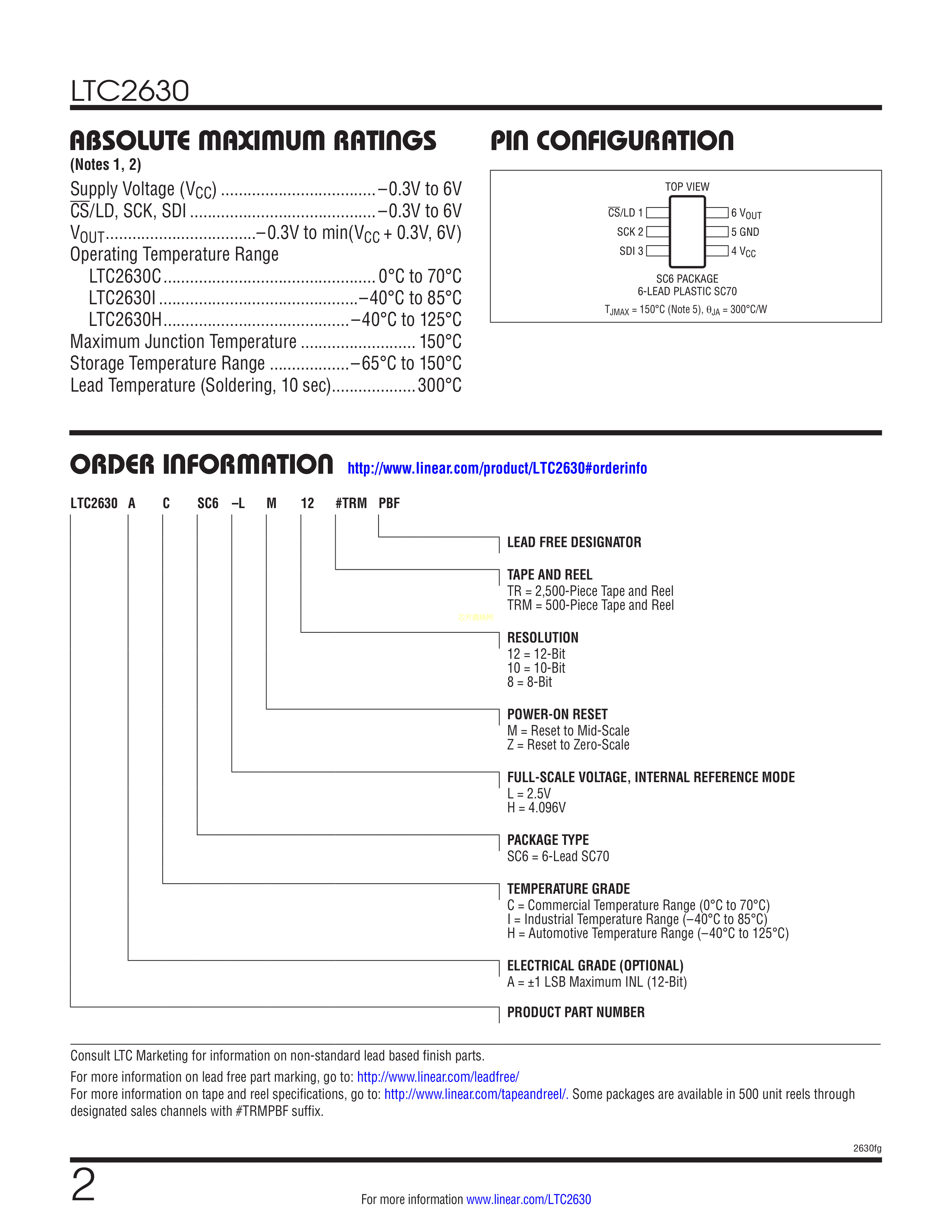 LTC2630ISC6-HZ10#TRPBF数据手册SC-70-6封装ADI(亚德诺)-LINEAR