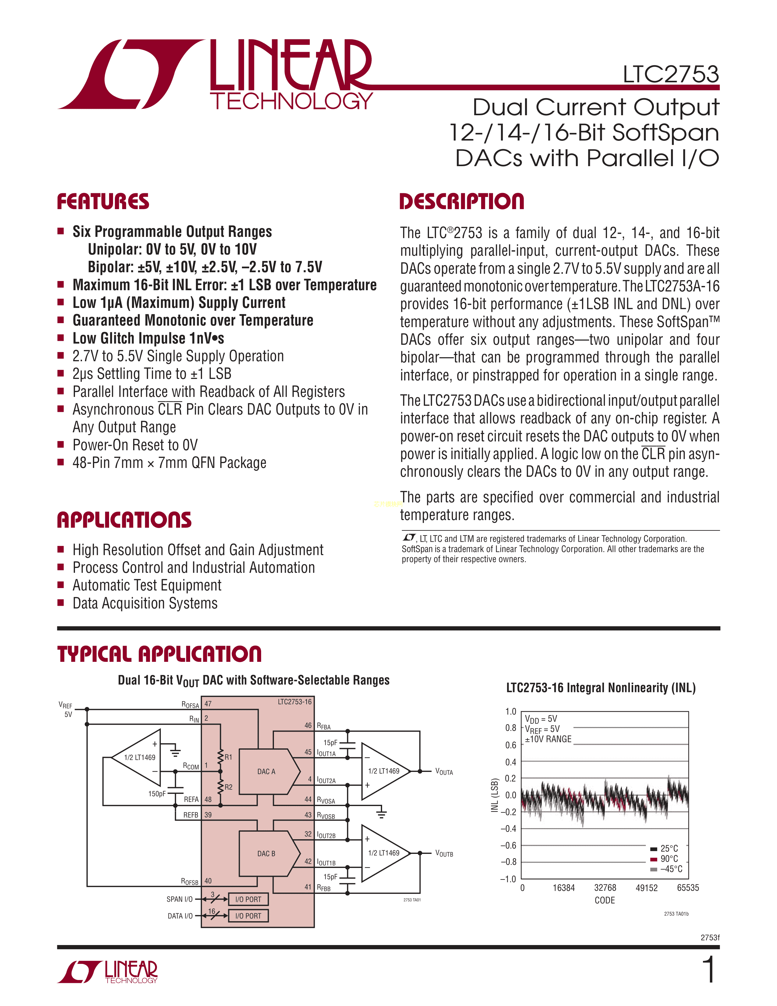 LTC2753ACUK-16#TRPBF数据手册QFN-48封装ADI(亚德诺)-LINEARPDF规格书,中英文下载
