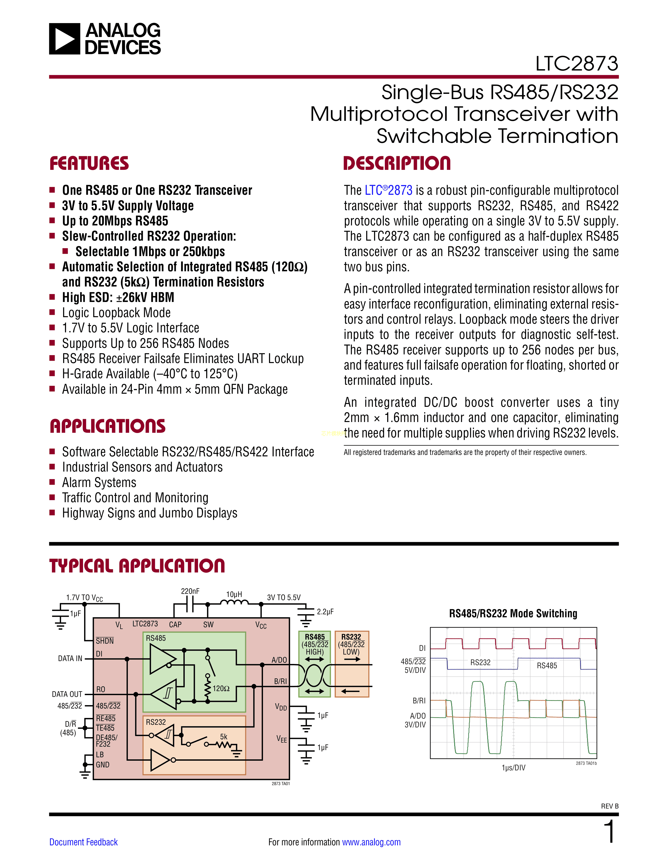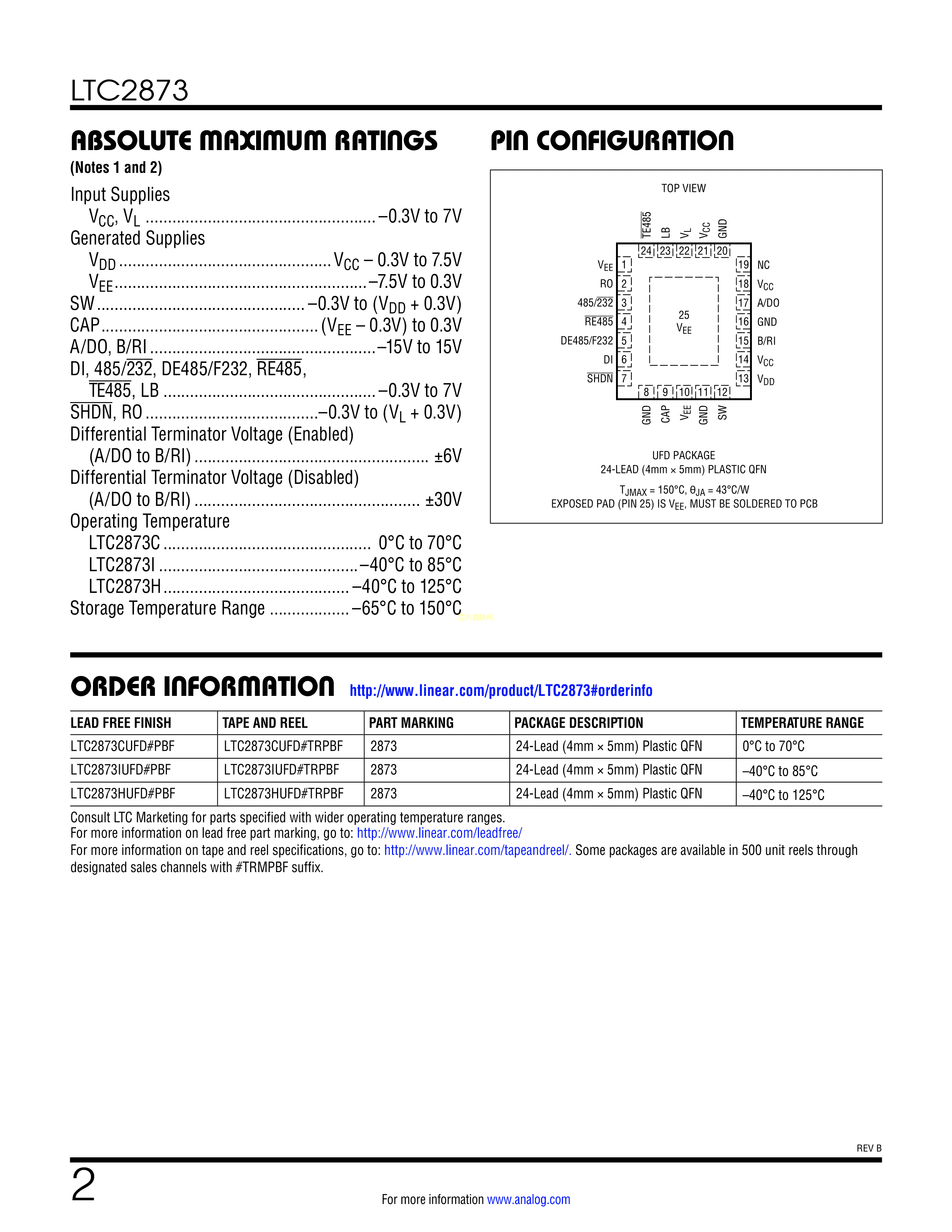 LTC2873IUFD#PBF数据手册QFN-24封装ADI(亚德诺)-LINEARPDF规格书,中