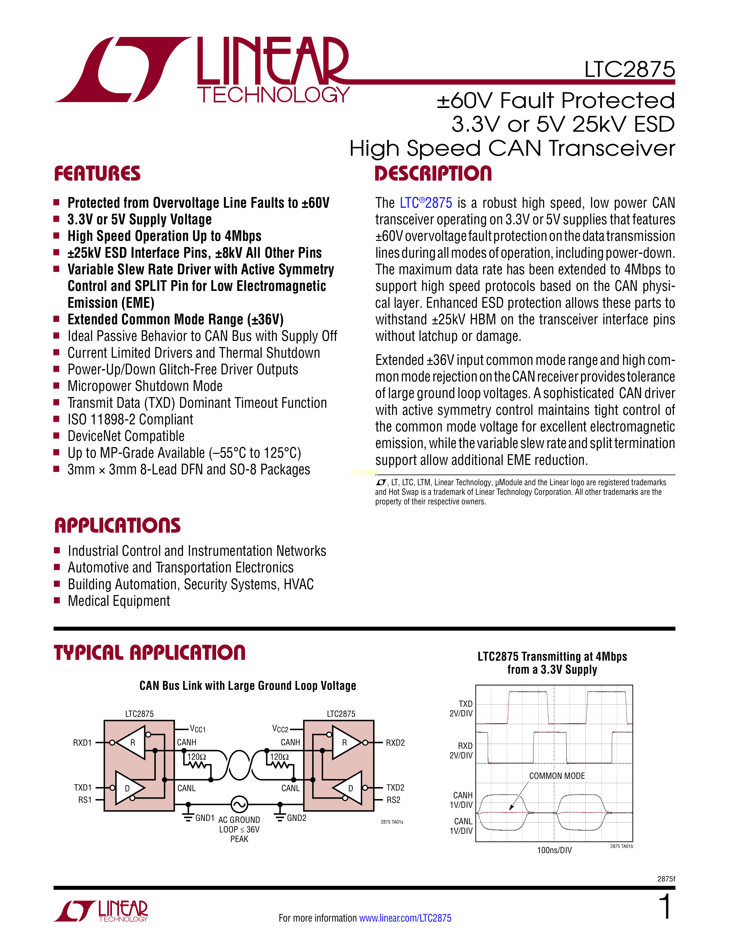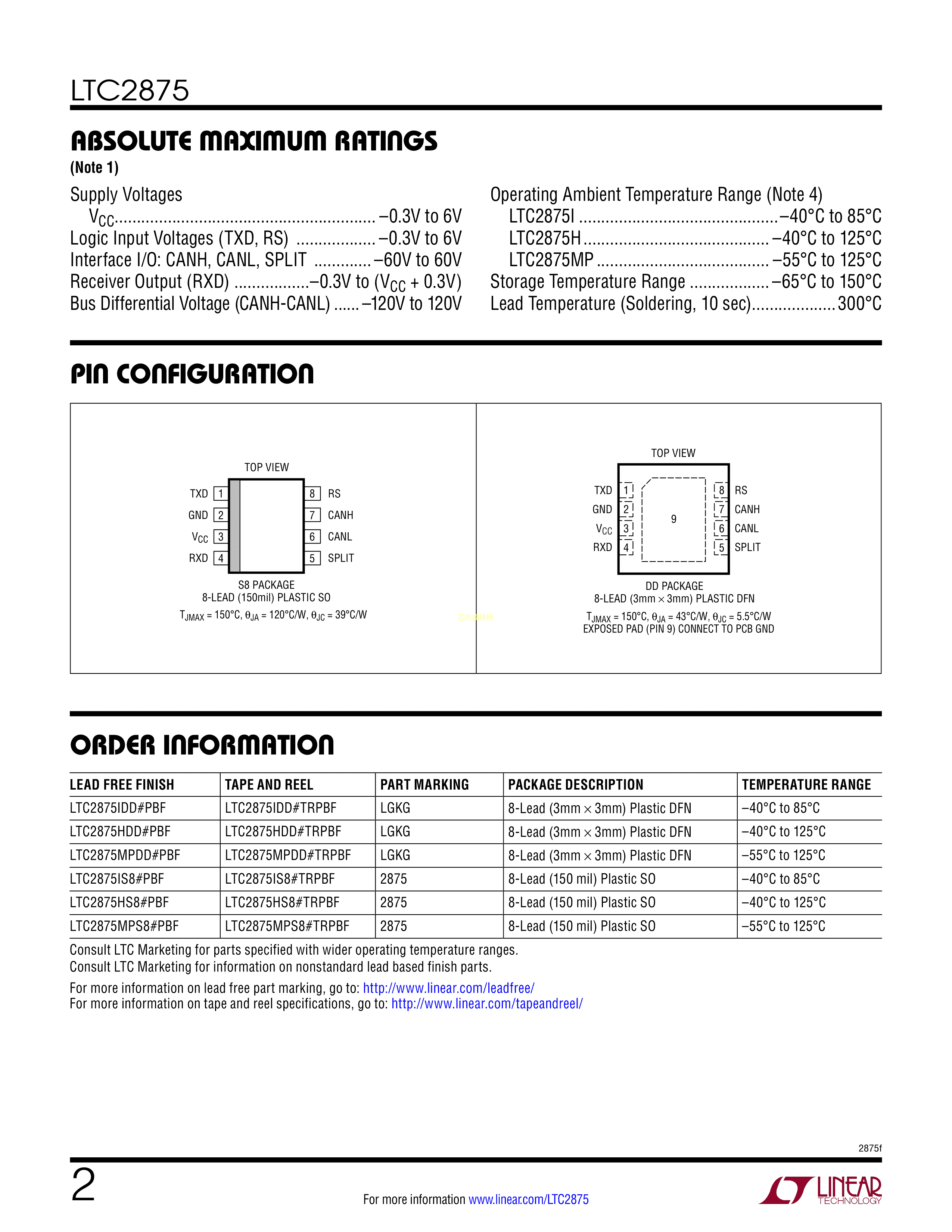 LTC2875HS8#PBF数据手册SOIC-8_150mil封装ADI(亚德诺)-LINEARPD