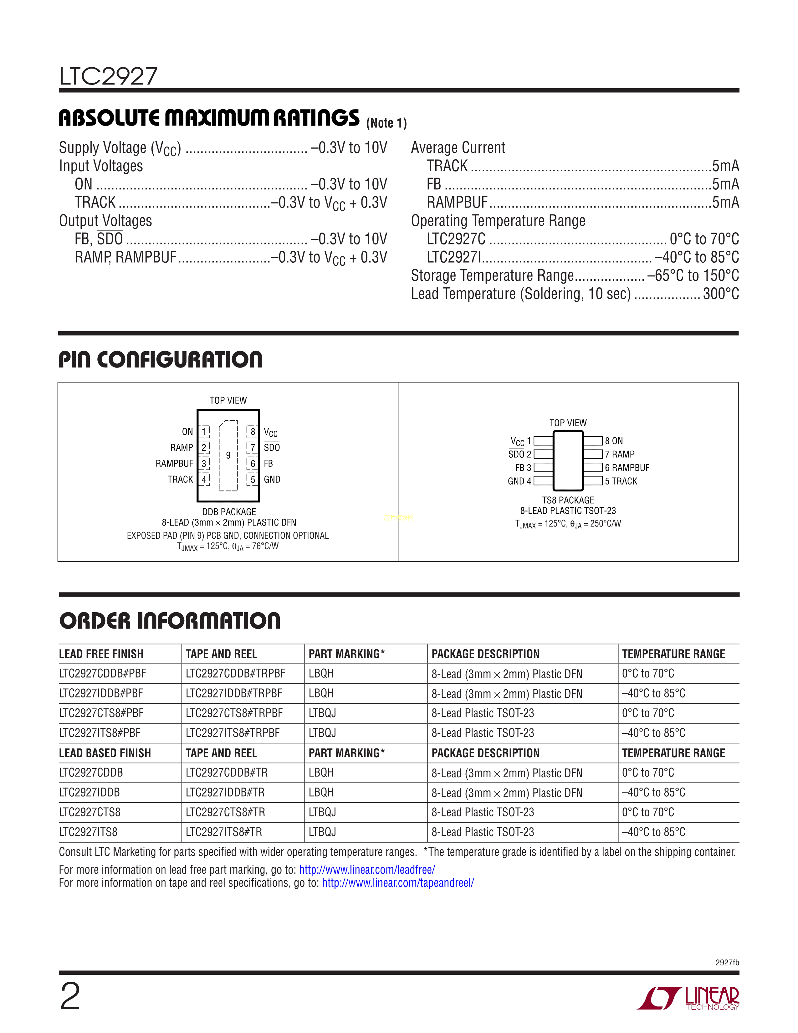 LTC2927CDDB#TRMPBF数据手册DFN-8封装ADI(亚德诺)-LINEARPDF规格书,中英文下载