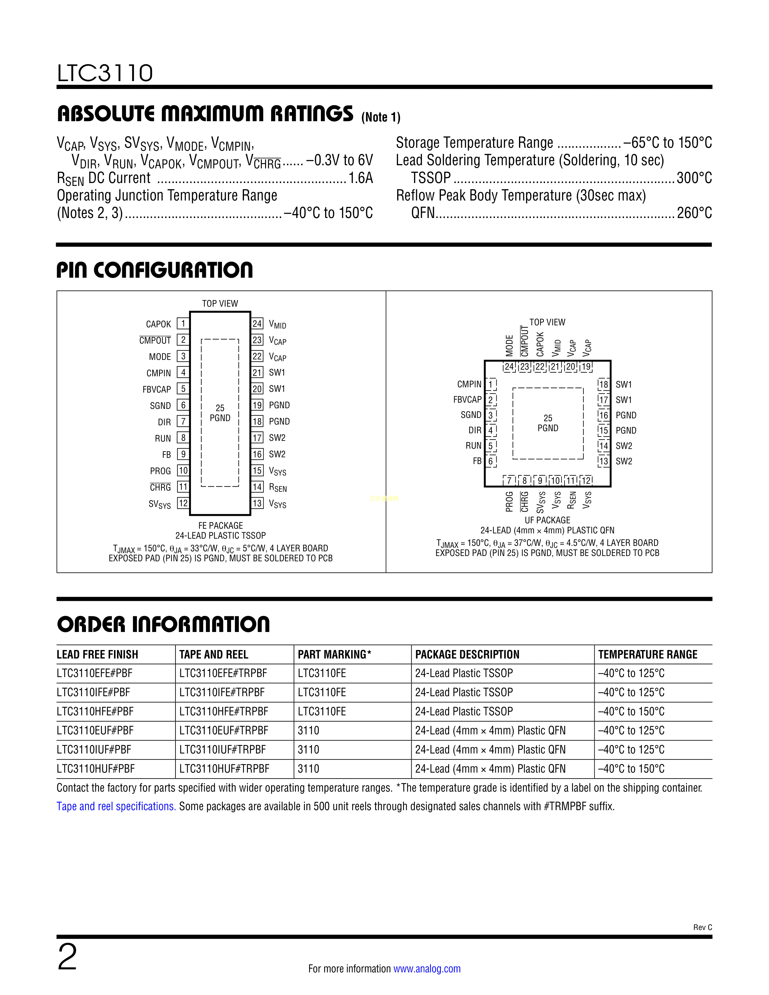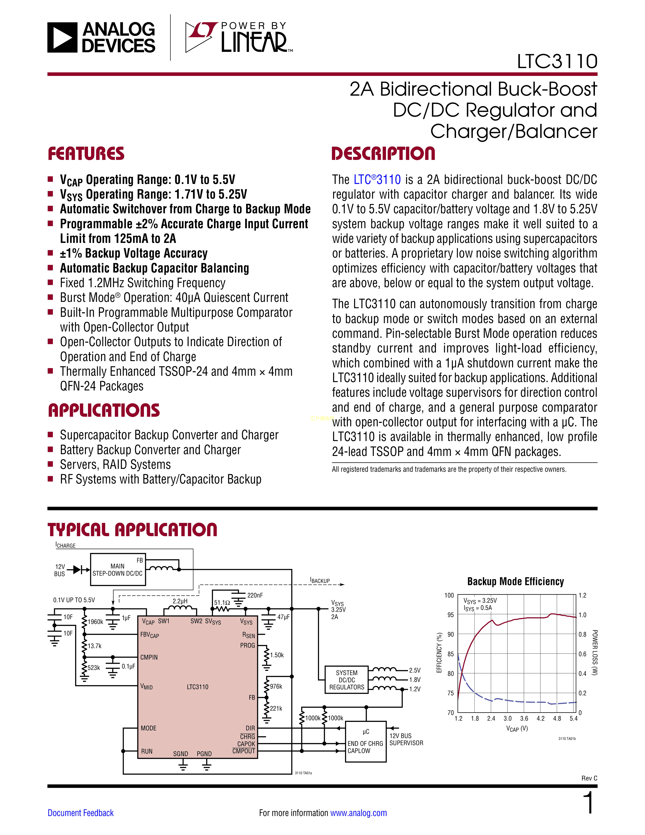 LTC3110HUF#TRPBF数据手册QFN-24封装ADI(亚德诺)-LINEARPDF规格书,