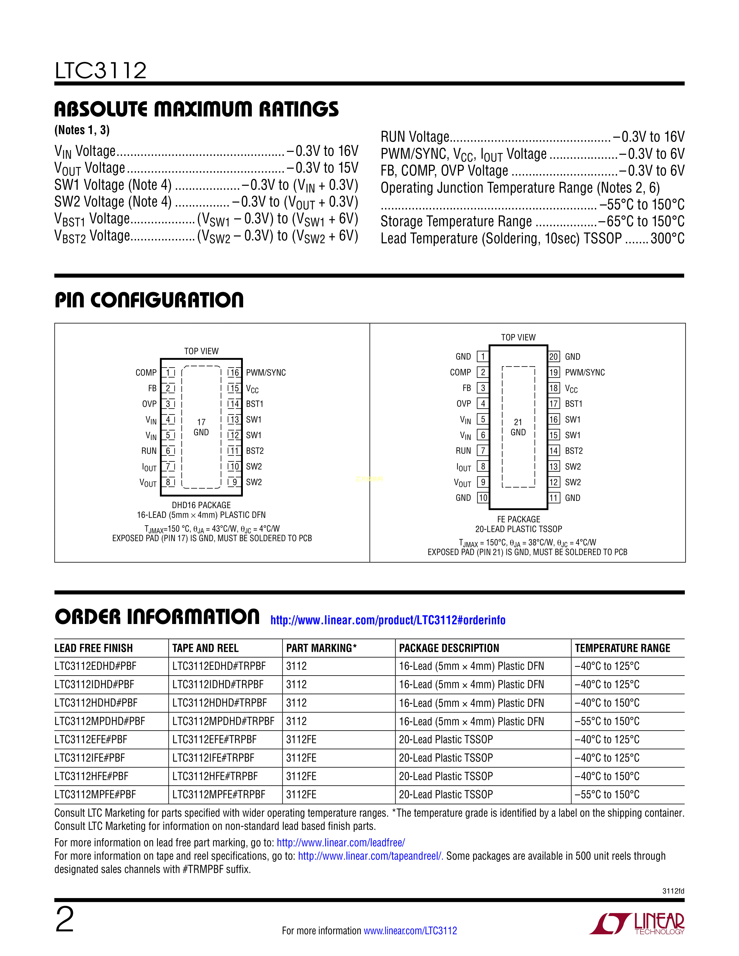 LTC3112MPDHD#TRPBF数据手册DFN-16封装ADI(亚德诺)-LINEARPDF规格
