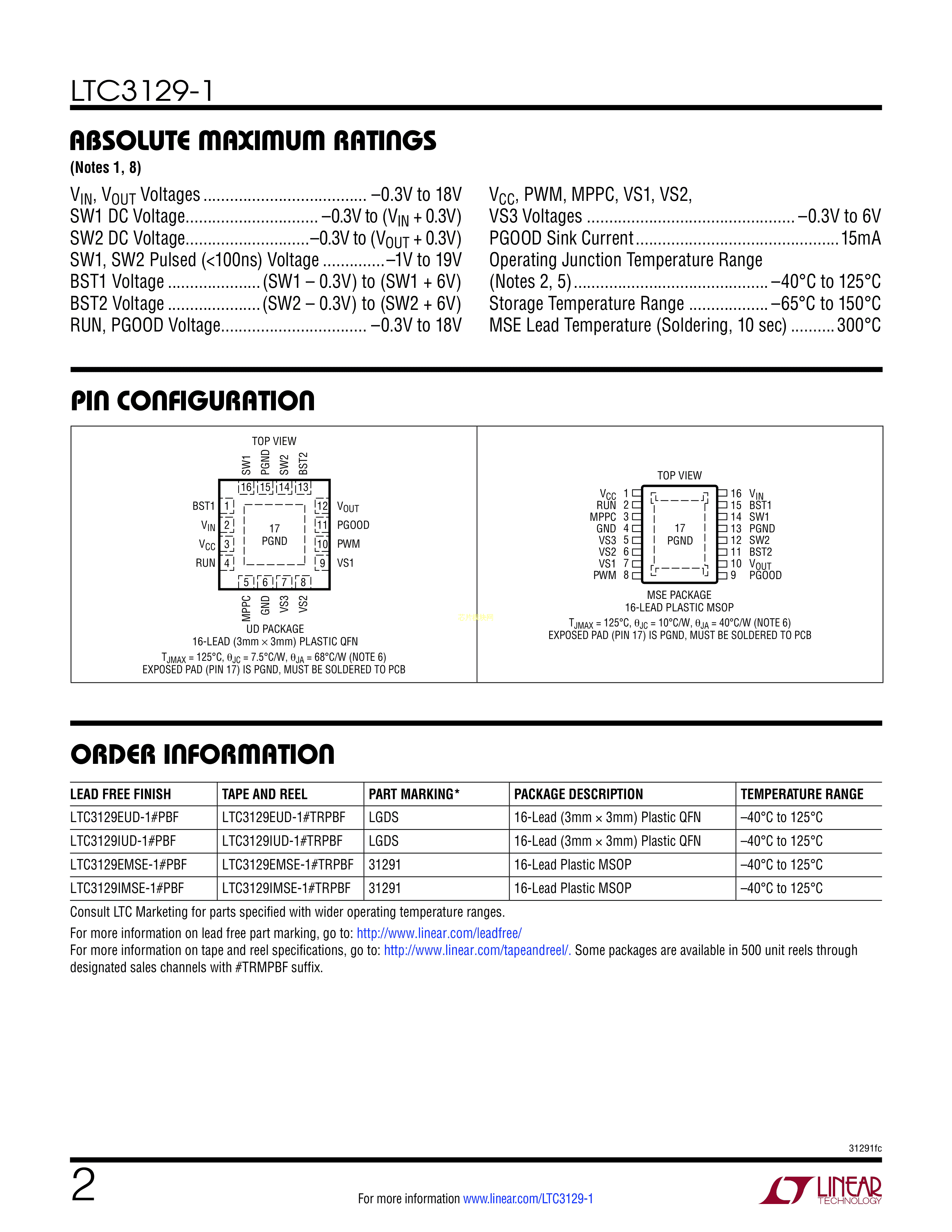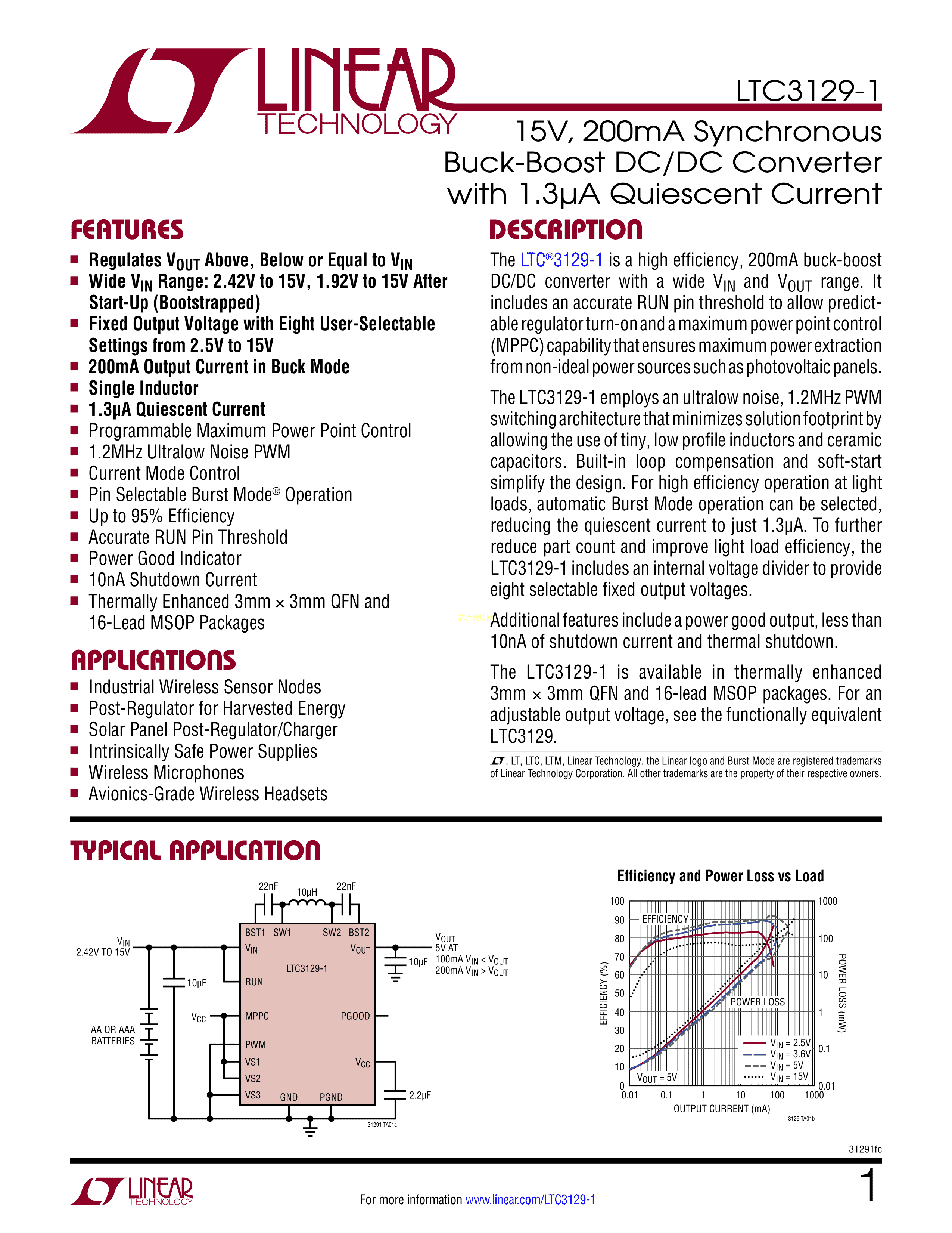 LTC3129IMSE-1#PBF数据手册MSOP-16封装ADI(亚德诺)-LINEARPDF规格