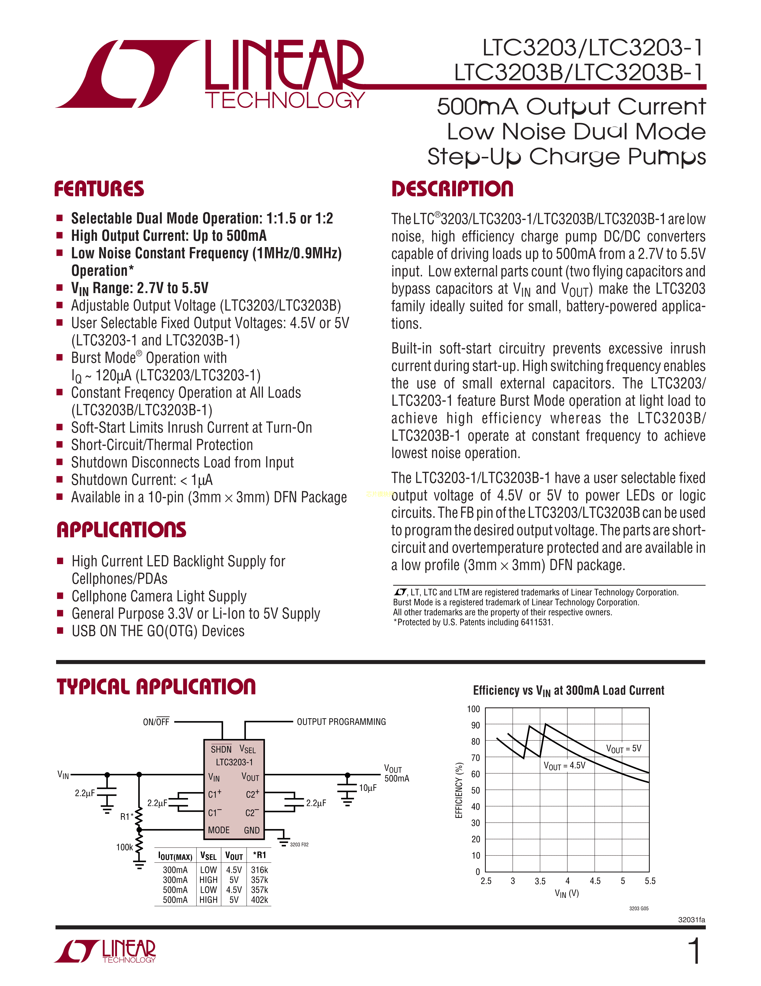 LTC3203BEDD-1#PBF数据手册DFN-10封装ADI(亚德诺)-LINEARPDF规格书