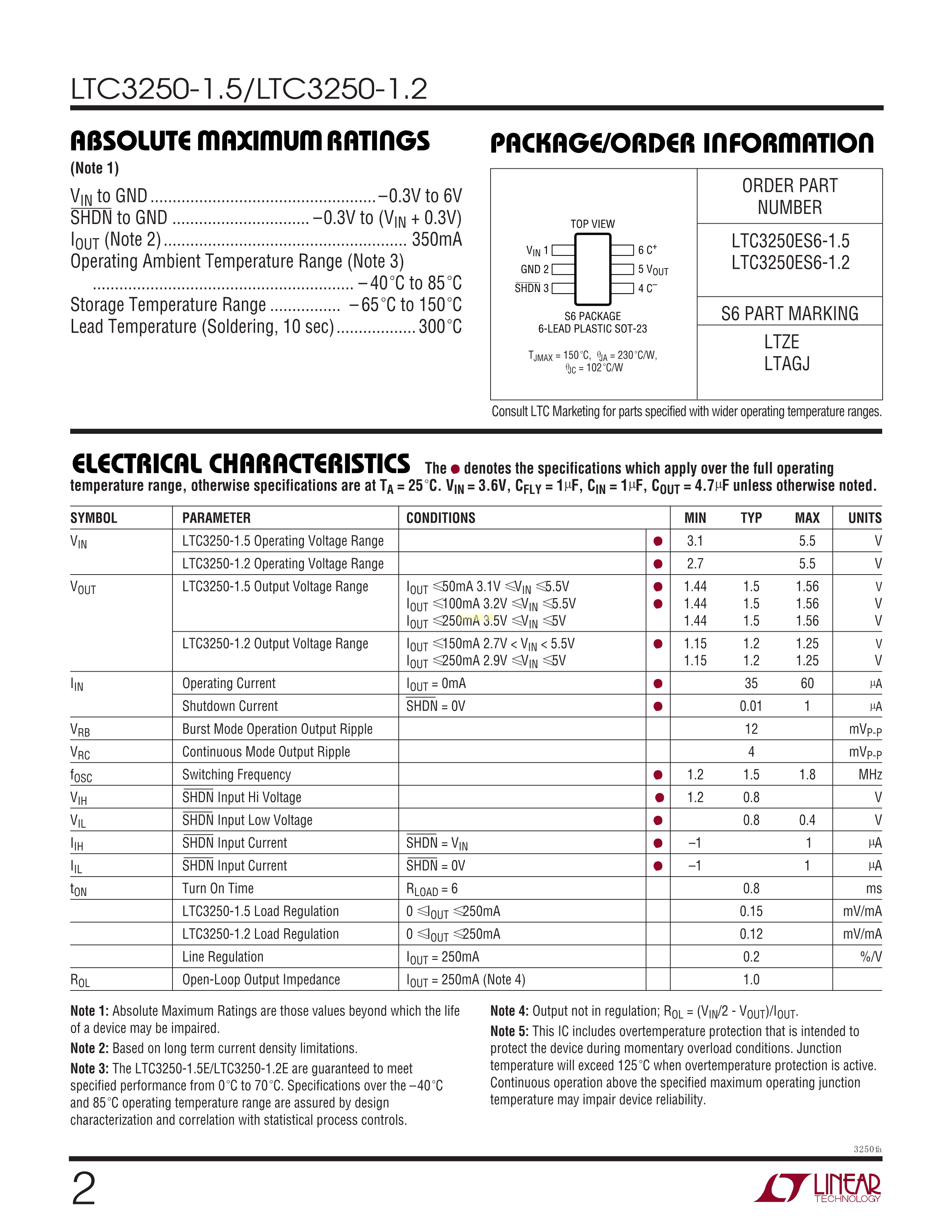 LTC3250ES6-1.5#TRMPBF数据手册TSOT-23-6封装ADI(亚德诺)-LINEA