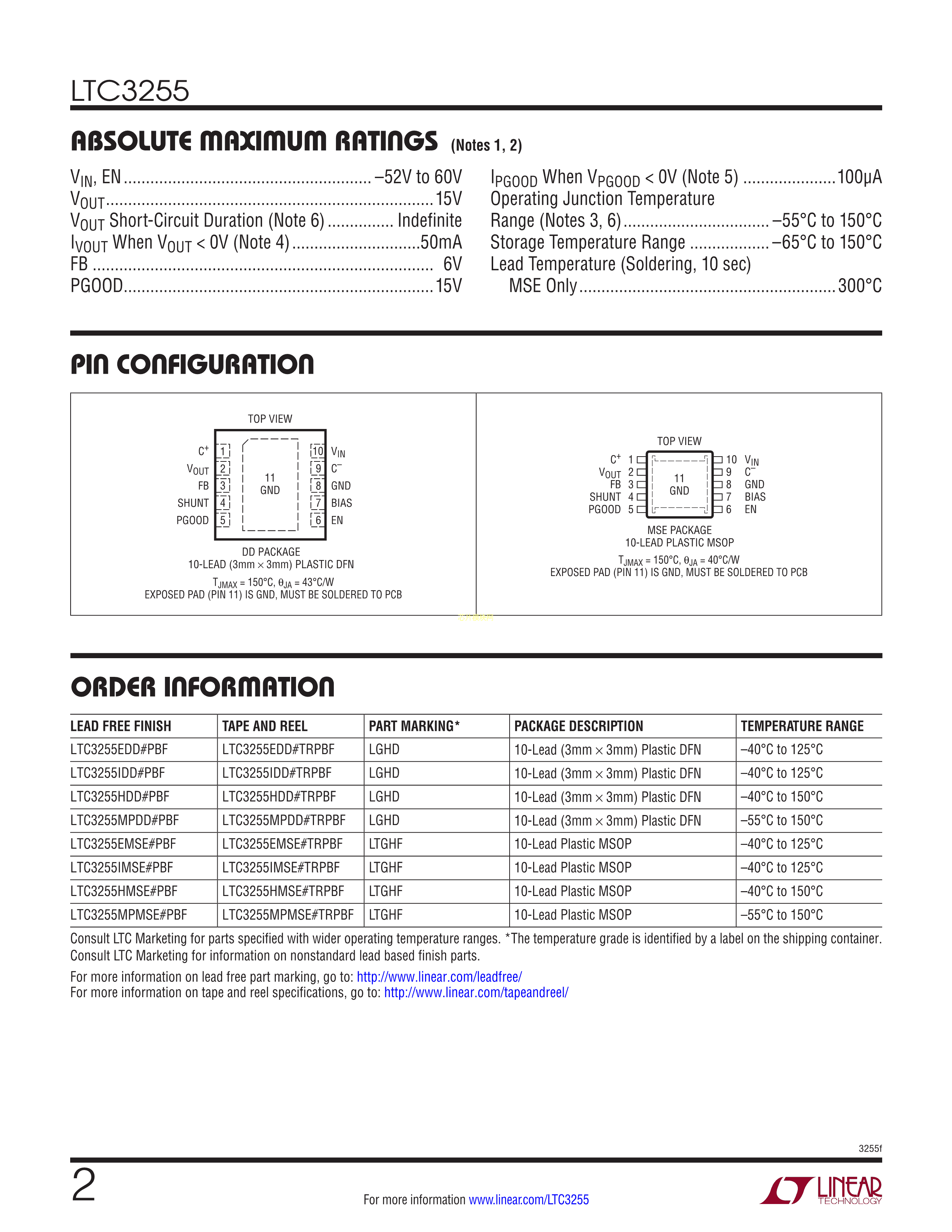 LTC3255HDD#TRPBF数据手册DFN-10封装ADI(亚德诺)-LINEARPDF规格书,