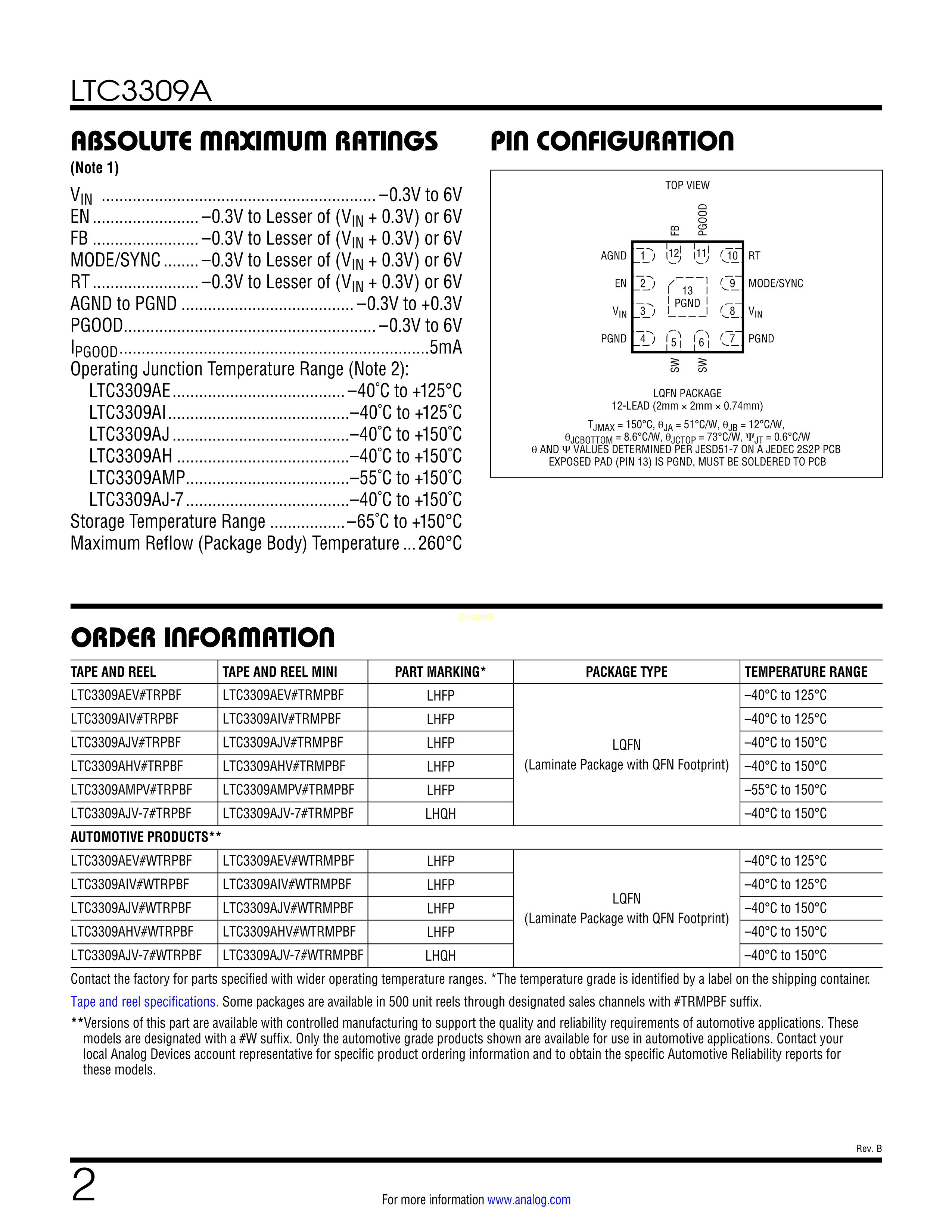 LTC3309AMPV#TRMPBF数据手册LQFN-12(2x2)封装ADI(亚德诺)-LINEA
