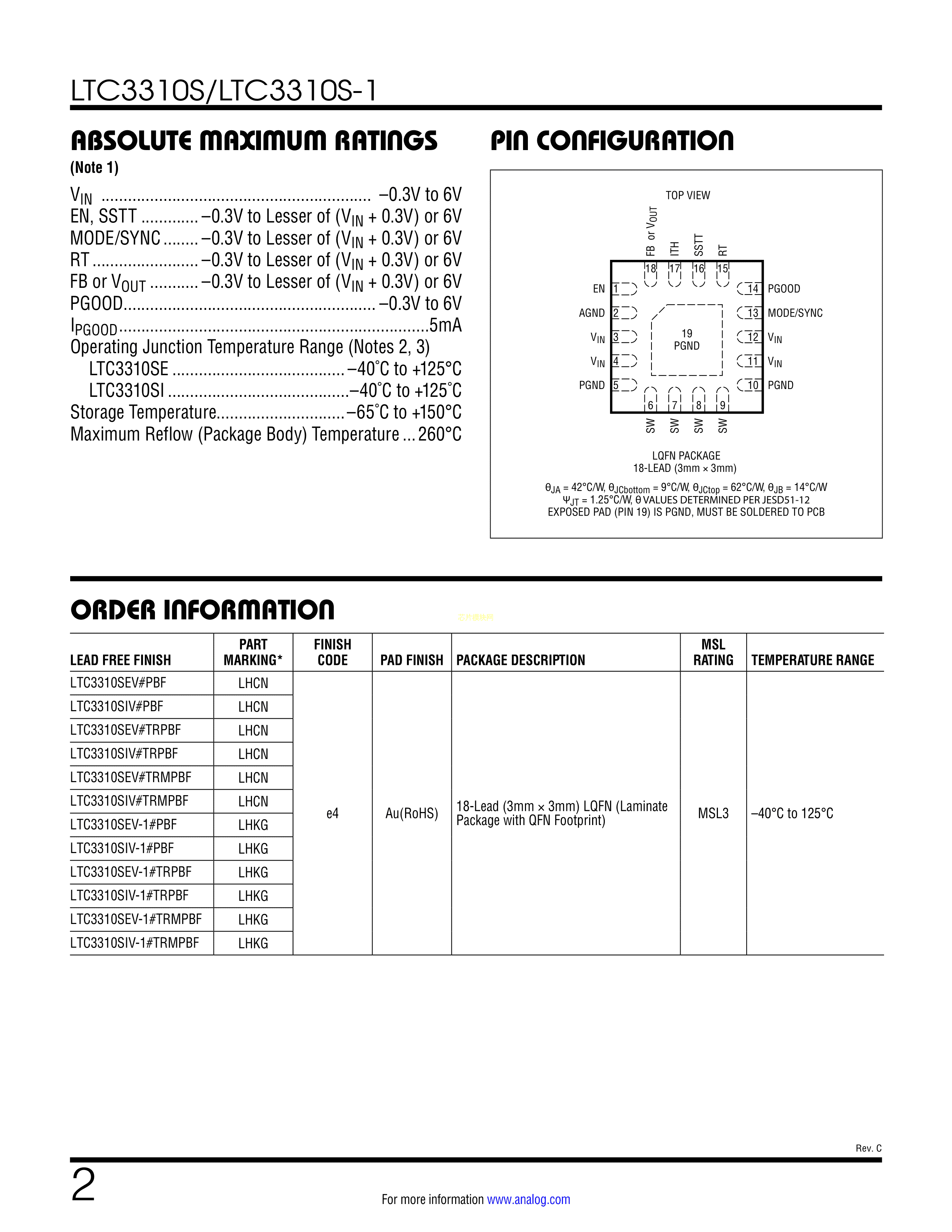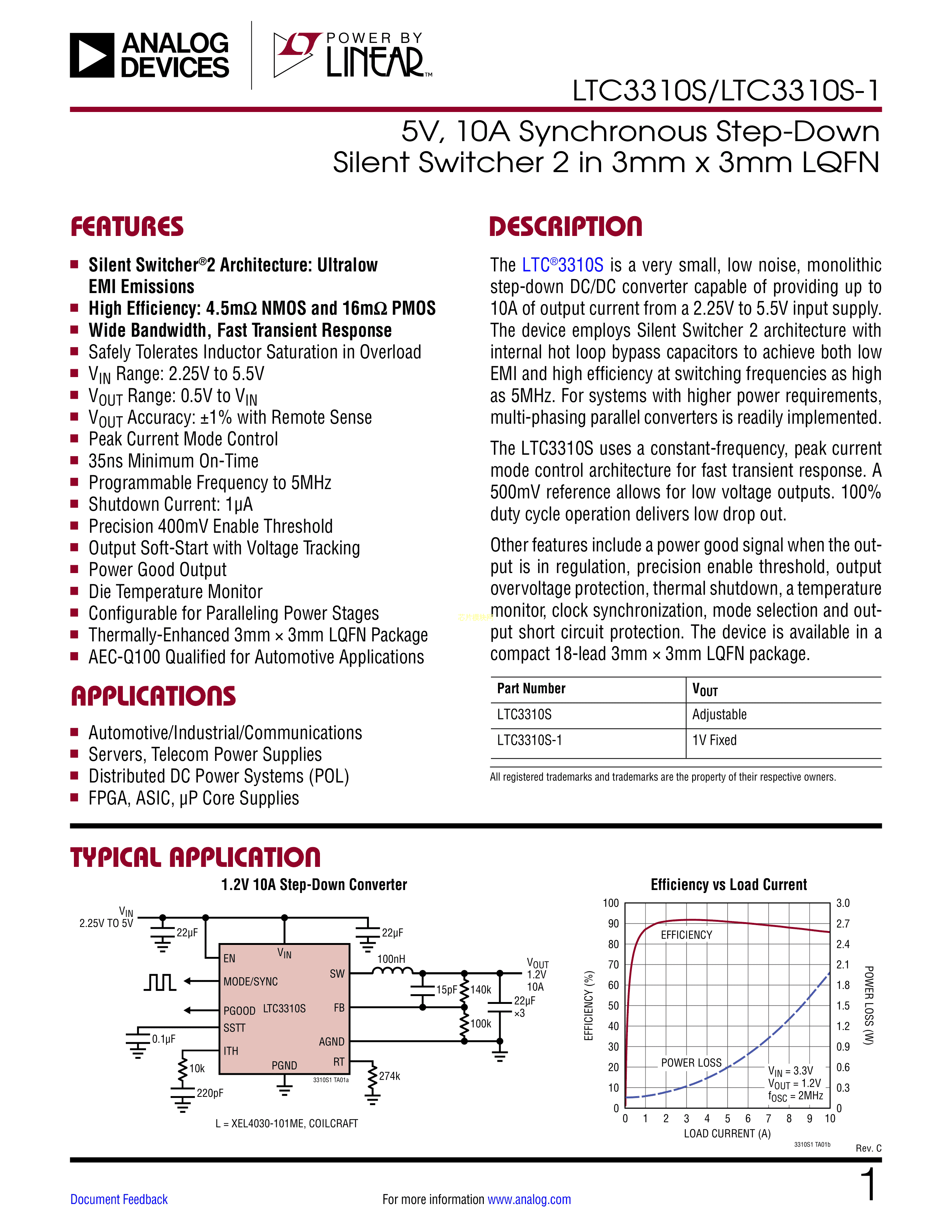 LTC3310SEV#TRPBF数据手册LQFN-18封装ADI(亚德诺)-LINEARPDF规格书,中英文下载