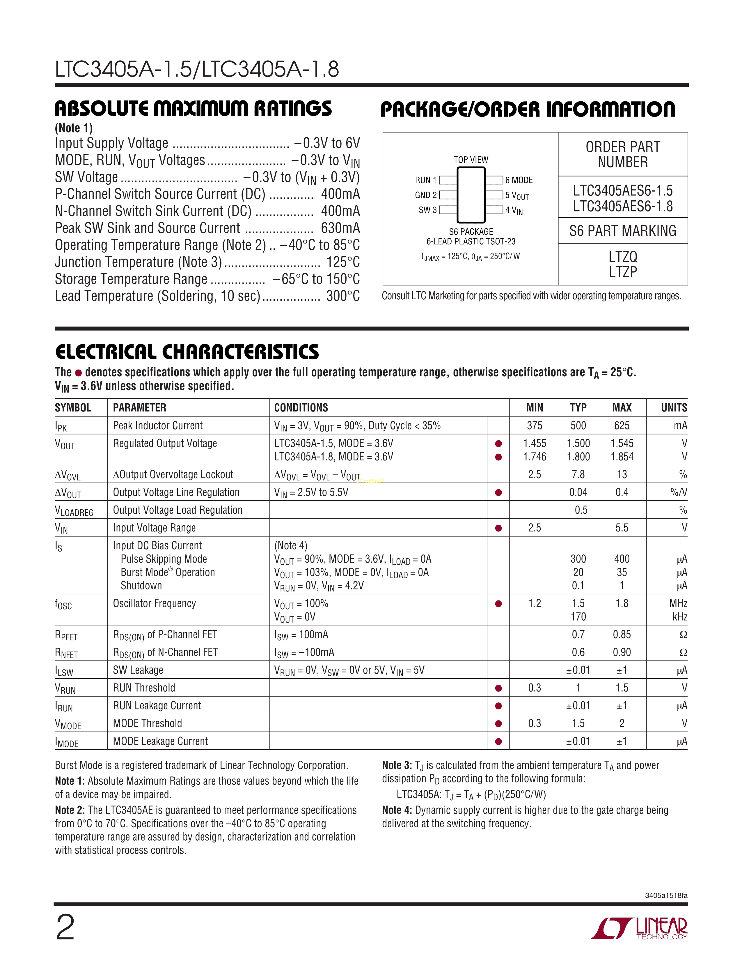 LTC3405AES6-1.8#TRMPBF数据手册TSOT-23-6封装ADI(亚德诺)-LINE