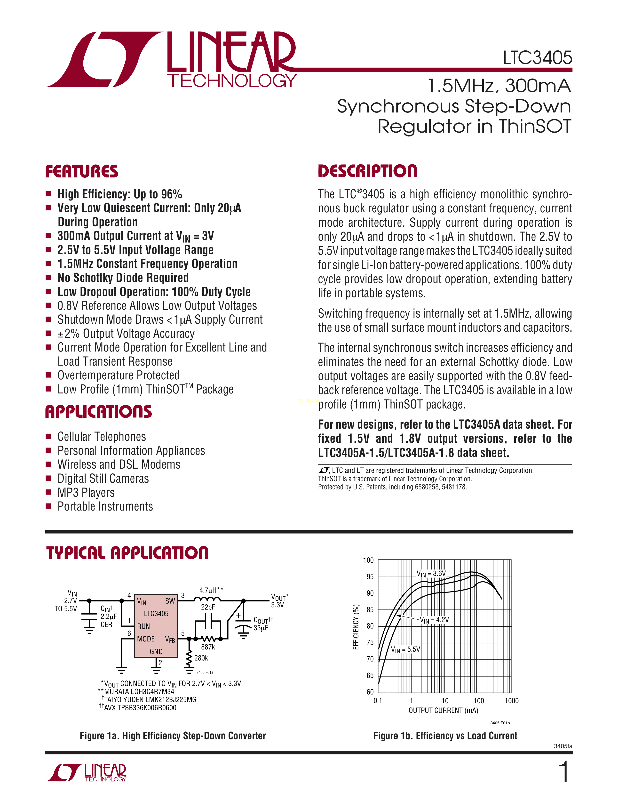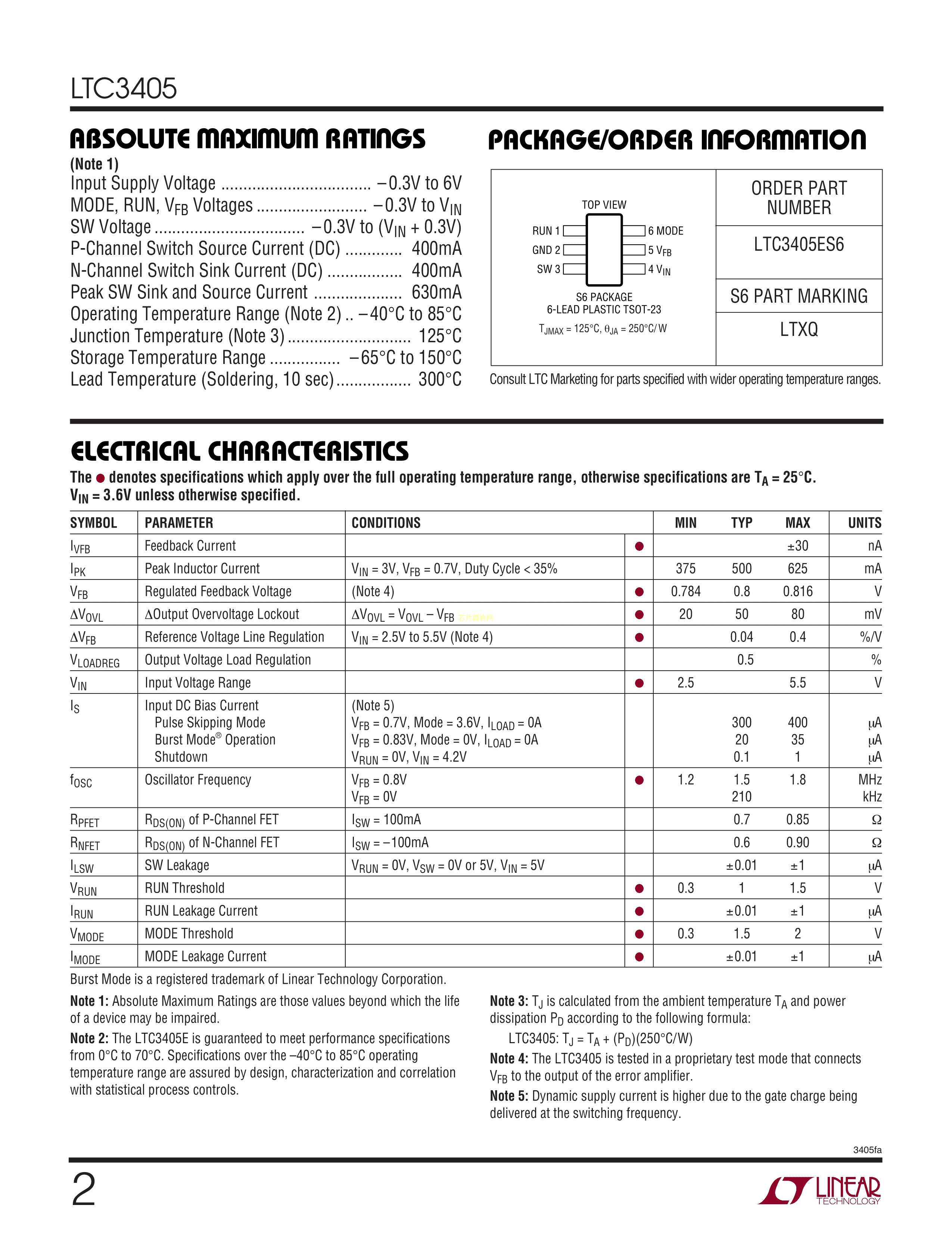 LTC3405ES6#TRPBF数据手册TSOT-23-6封装ADI(亚德诺)-LINEARPDF规