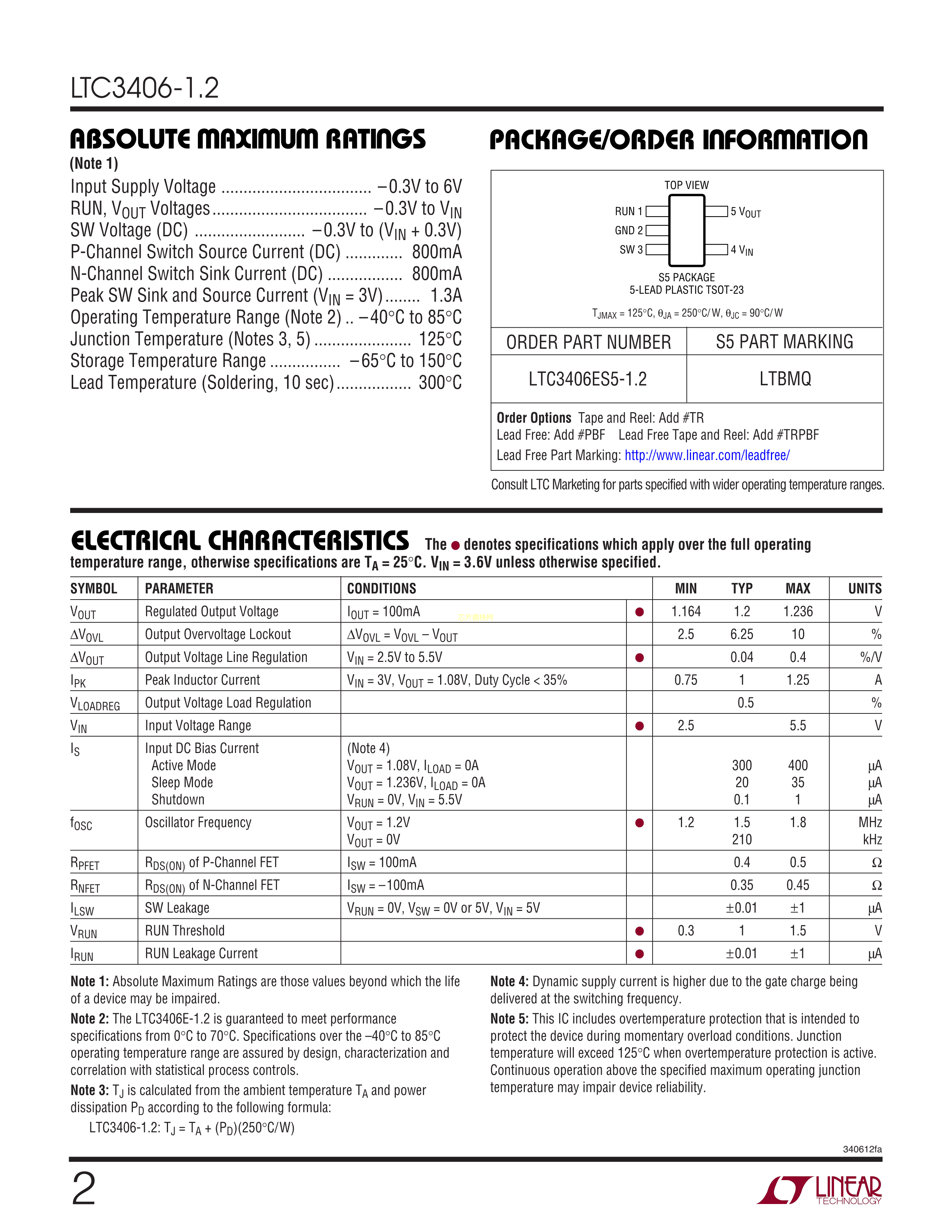 LTC3406ES5-1.2#TRMPBF数据手册TSOT-23-5封装ADI(亚德诺)-LINEA