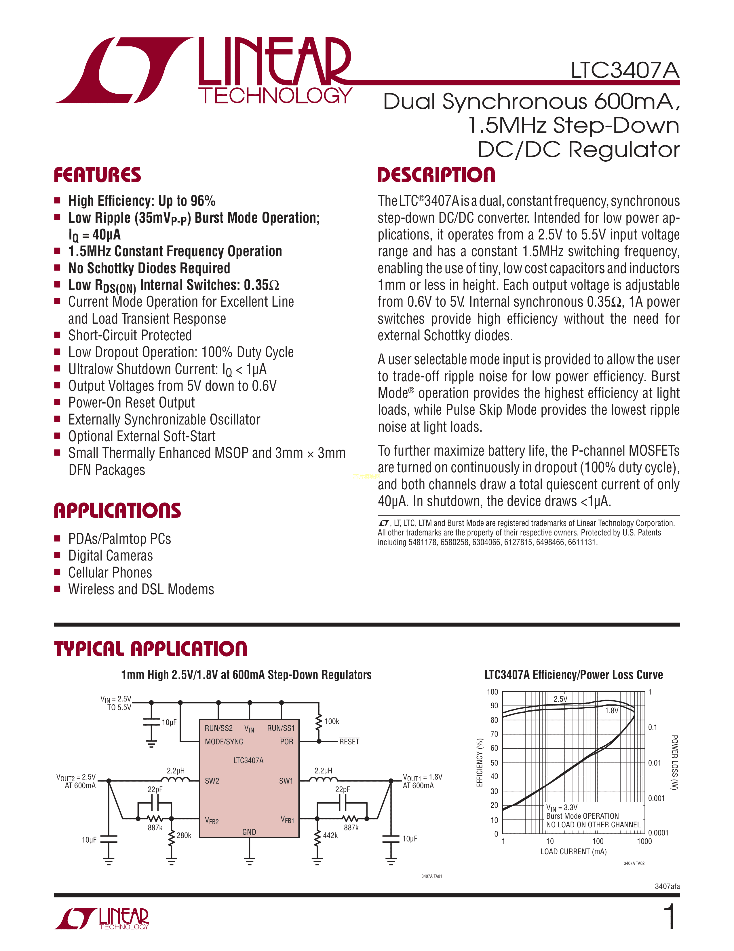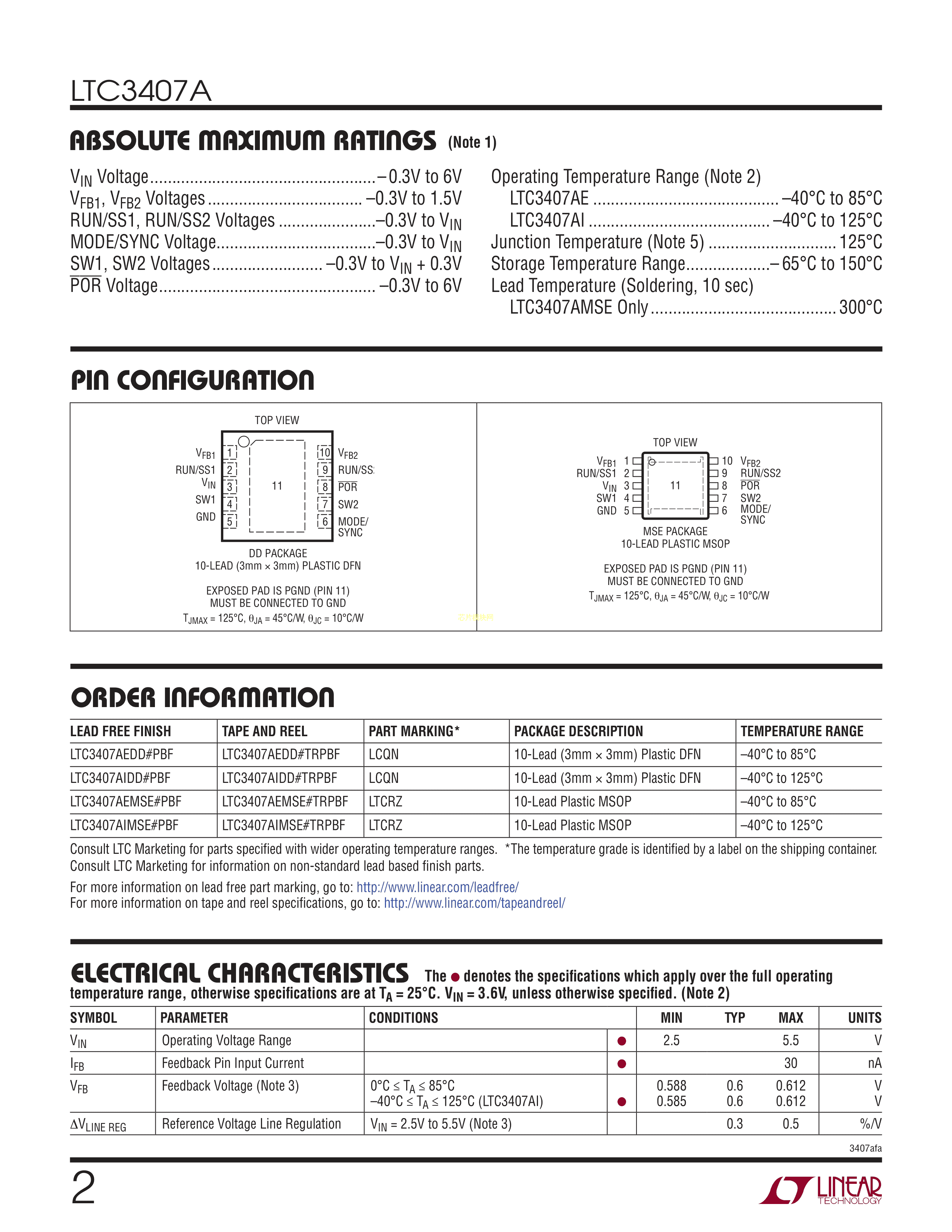 LTC3407AEMSE#PBF数据手册MSOP-10封装ADI(亚德诺)-LINEARPDF规格书