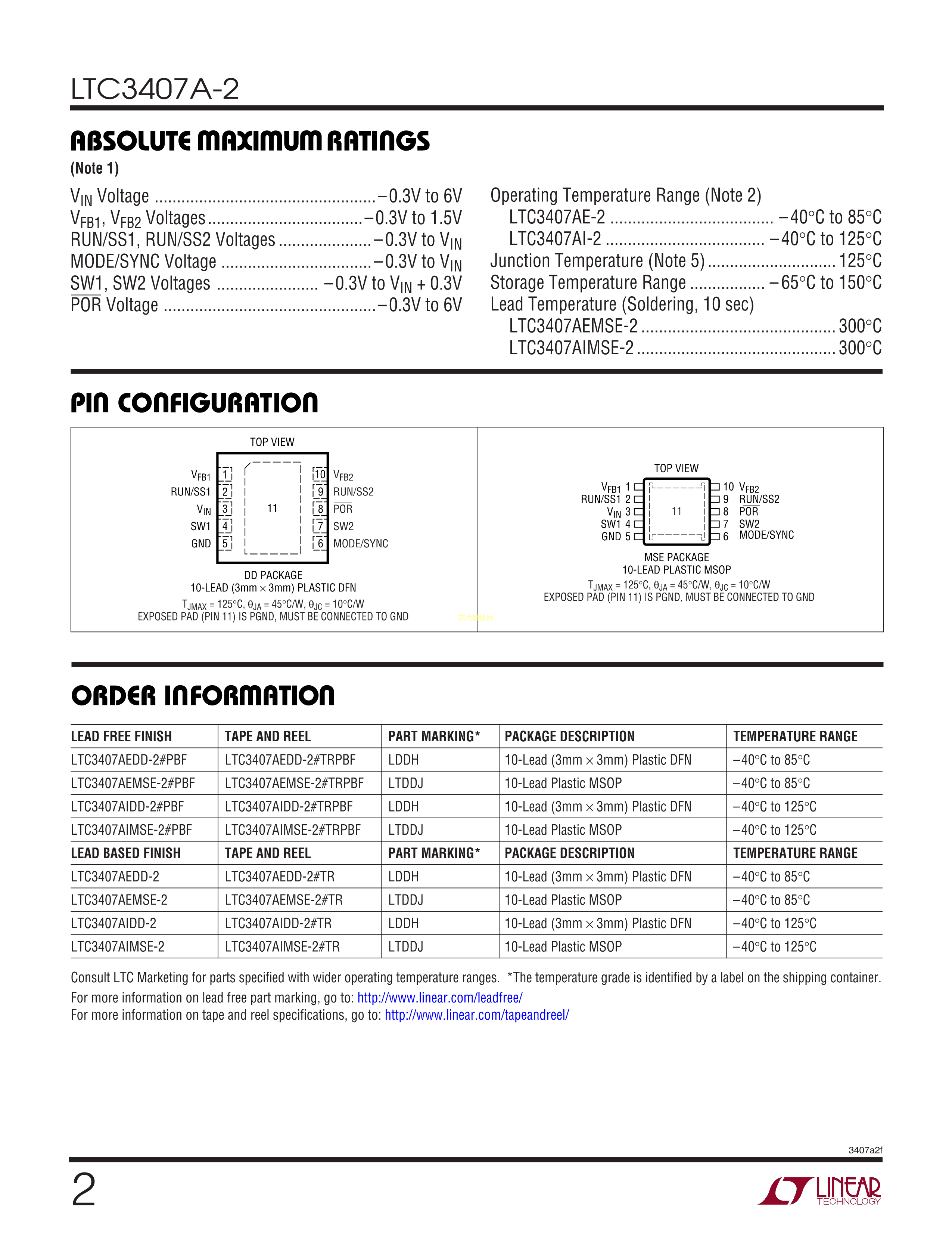 LTC3407AIDD-2#PBF数据手册DFN-10封装ADI(亚德诺)-LINEARPDF规格书