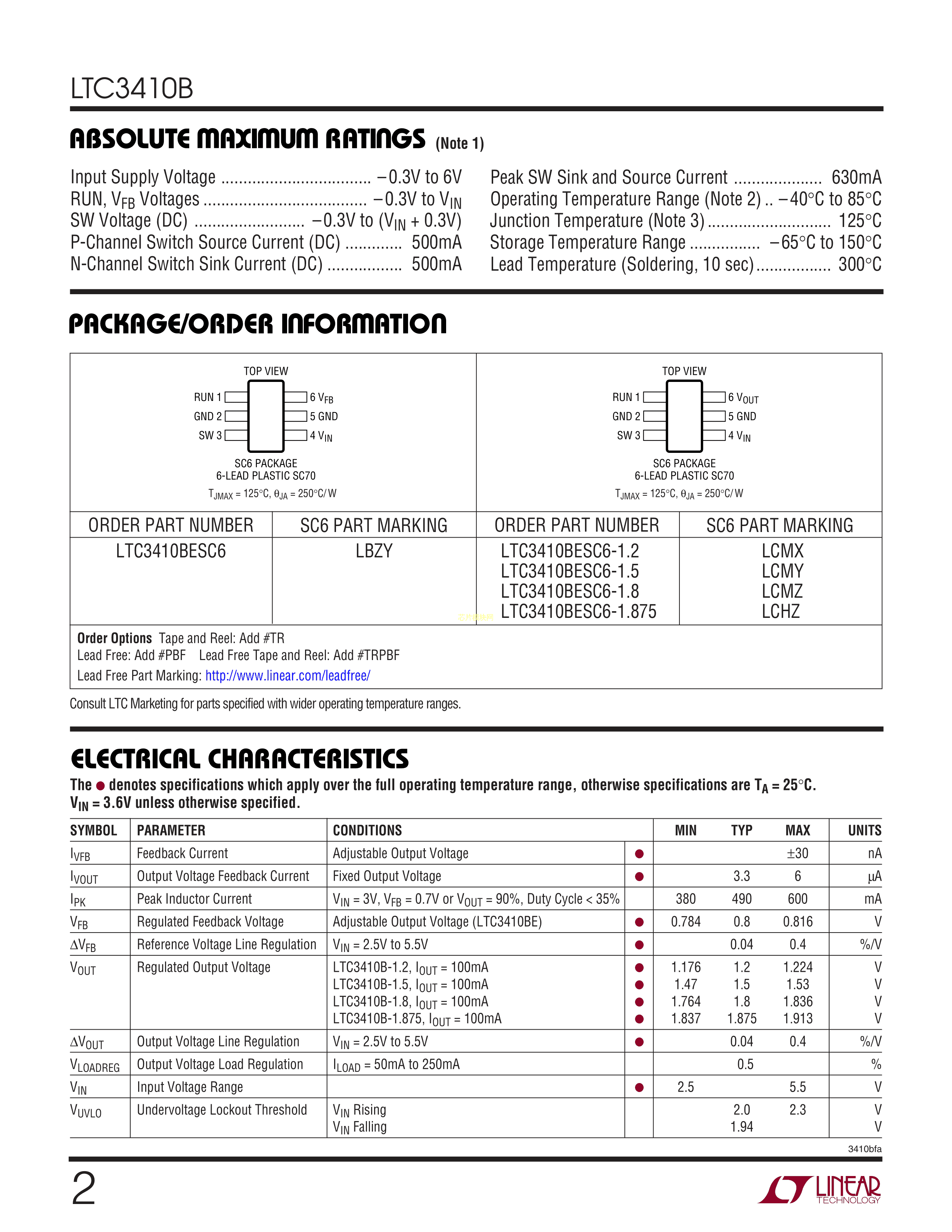 LTC3410BESC6-1.5#TRPBF数据手册SC-70-6封装ADI(亚德诺)-LINEAR