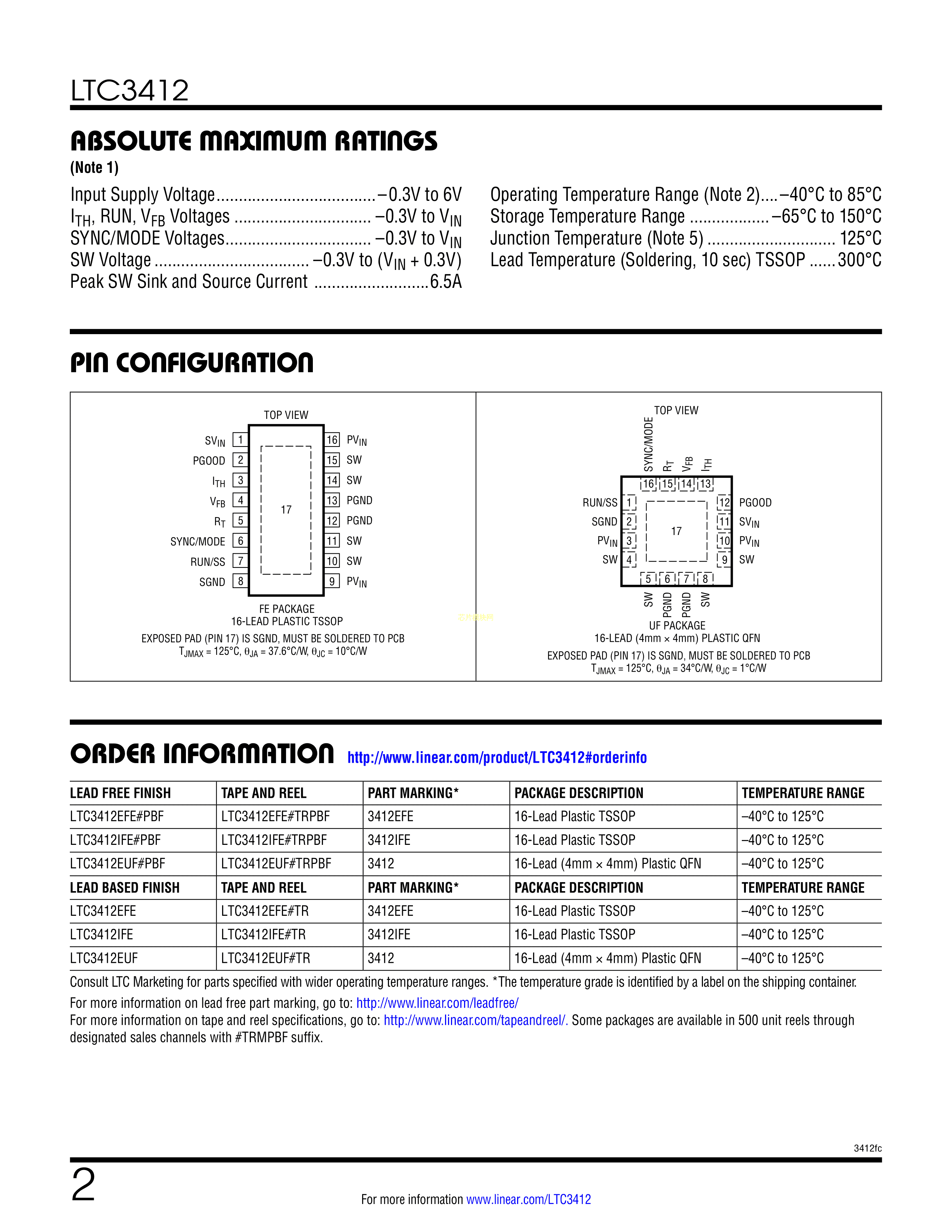 LTC3412EUF#TRPBF数据手册QFN-16封装ADI(亚德诺)-LINEARPDF规格书,