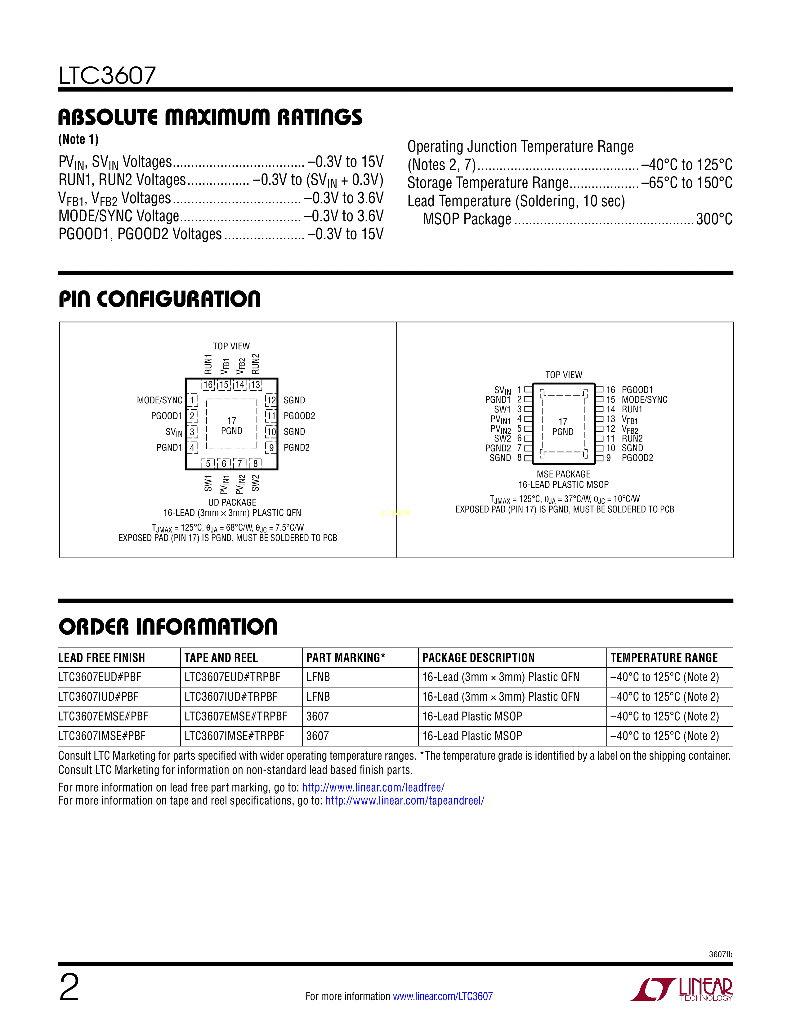 LTC3607EMSE#TRPBF数据手册MSOP-16封装ADI(亚德诺)-LINEARPDF规格